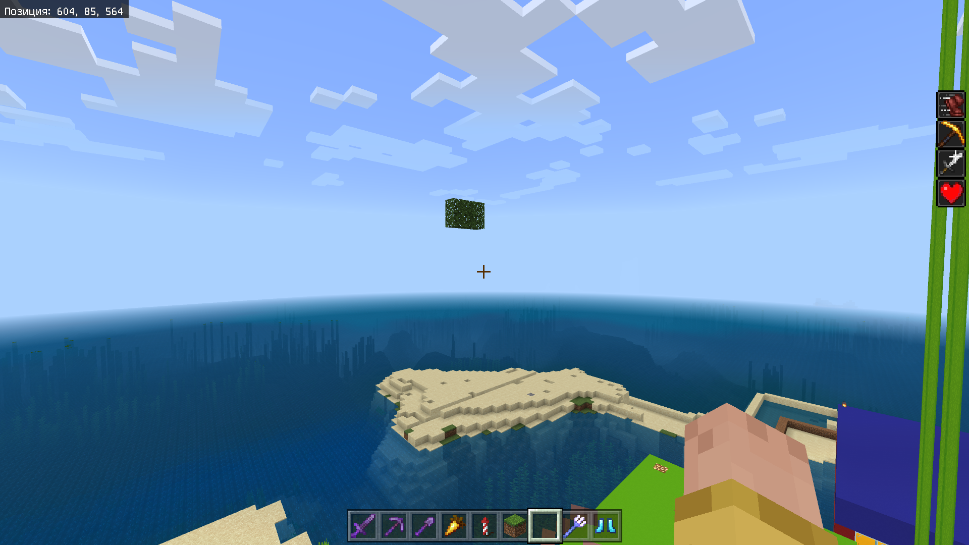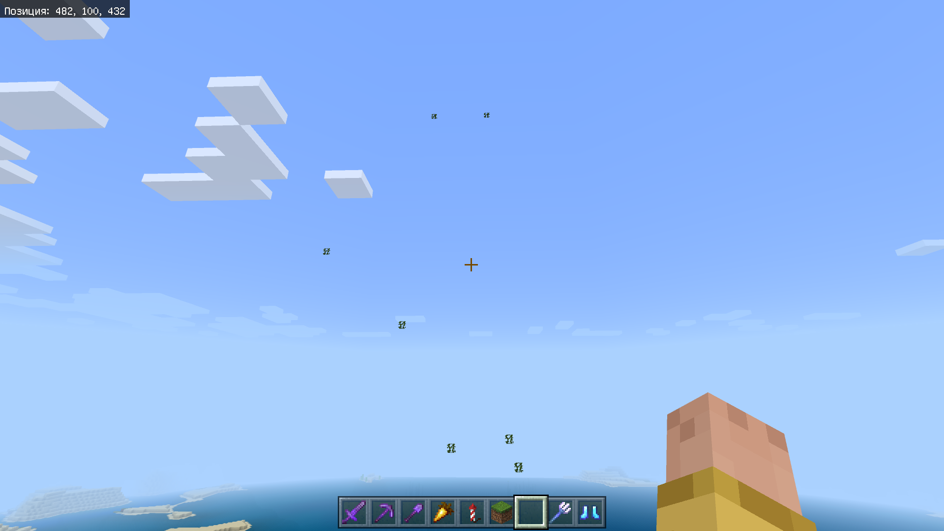 Some floating vines are generated above the terrain. As you continue to watch, they grow downward. If you save and reload the world, many more appear, along with other terrain decorations such as leaves and maybe tree trunks.