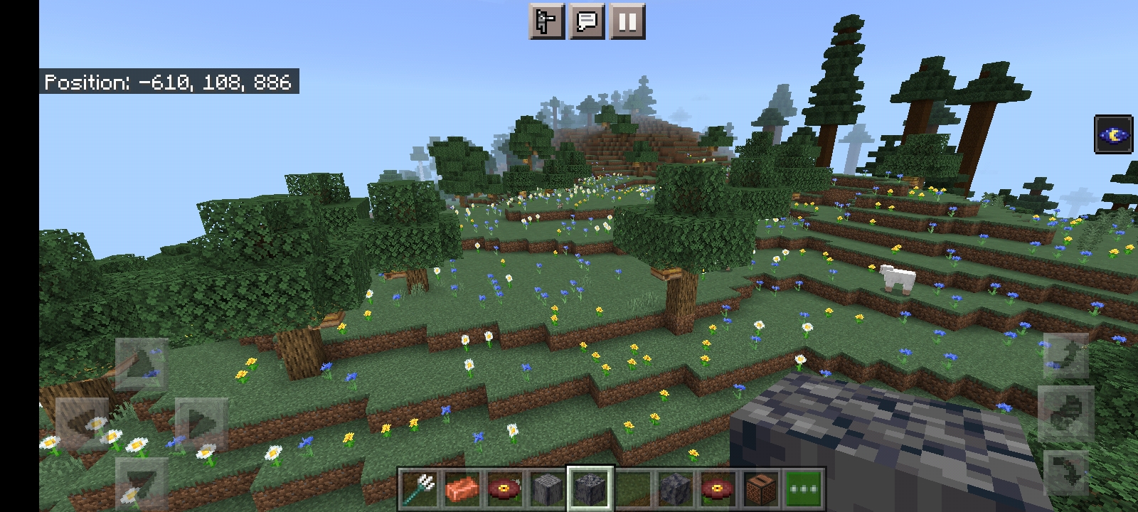 Hello I'm from Malaysia. I'm playing minecraft Pocket Edition on my phone, when I exploring the world, I found weird thing in Mountain Meadow biome, I don't know if it is an exactly how it's generate, I found many trees in this biome and causing many bees and hives. Here the world seed (194863087) and coordinate (-616, 88, 918) hope you give us some information about thisπ