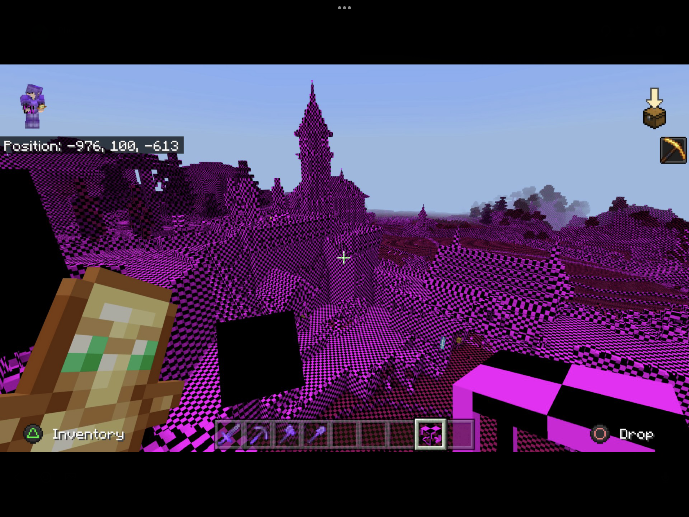 When I finally managed to enter my world, I played for an hour without any problem and entered the nether, but couldn't get out. When trying to go through the nether portal to the overworld, the game crashed every single time. As a desperate measure, I killed myself to leave the nether, but the game crashed and I haven't been able to load it again. Just like when I tried to play this version for the first time, it showed a message that said "Out of storage" (this time with a pink and black background), and now it says "There was an issue loading this world" again.