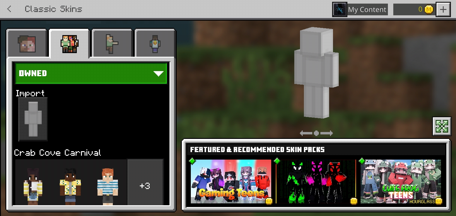I was trying to import my skin there with my cape, that error or glitch shows "failed to load character skins, instead it shows Alex and Steve skin.