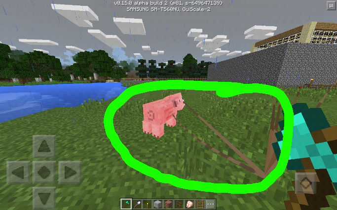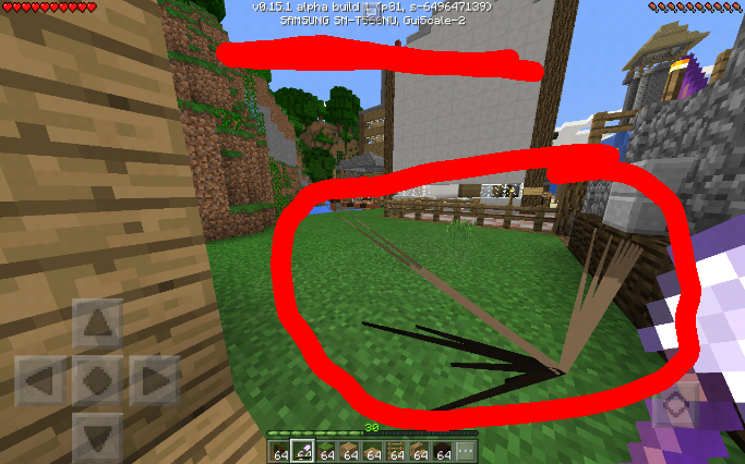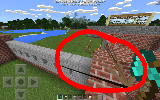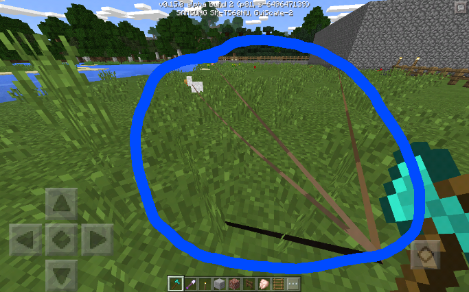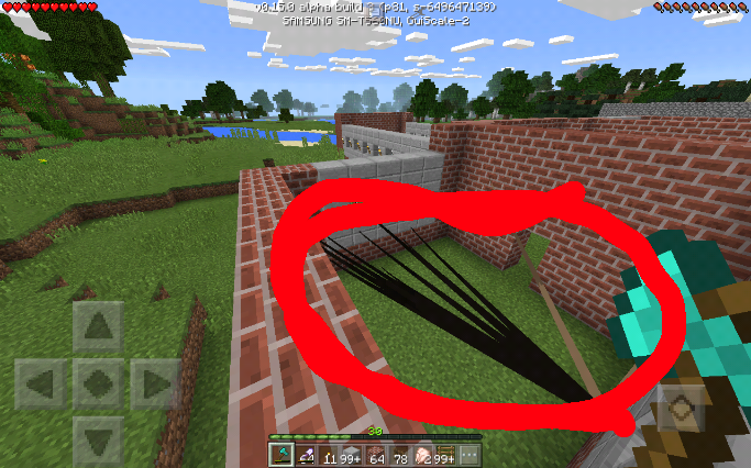 These random lines are appearing in my world.They point from the block/tool im using, to a mob. Device: Samsung Galaxy Tab E.