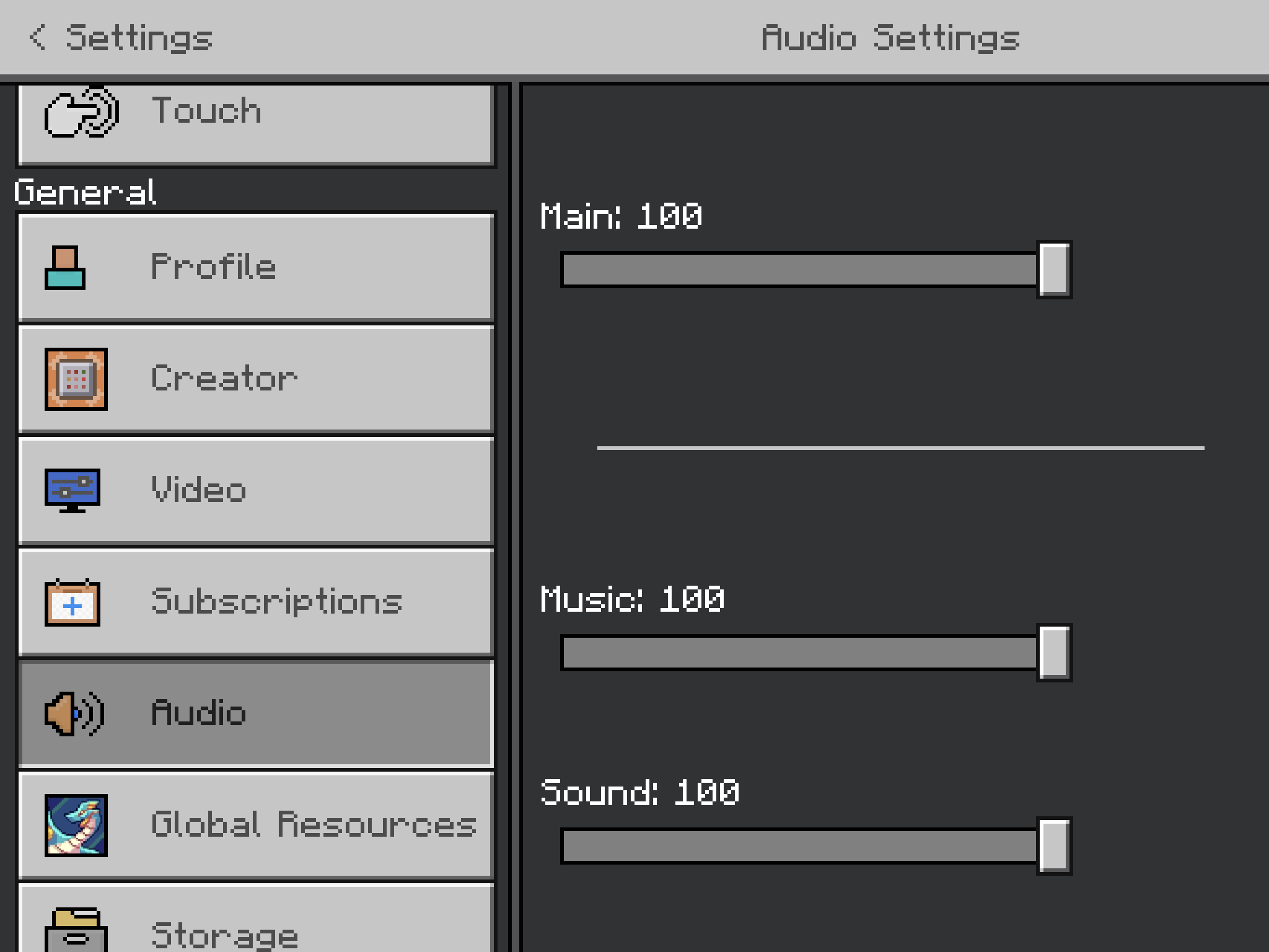 The sliders in the 'Audio Settings' section on Bedrock are spaced unusually far apart compared to other sections. The bug is purely visual and does not affect the use of the sliders at all. Does not fix when refreshing or pressing the 'Reset to Default' button at the bottom of 'Audio Settings'