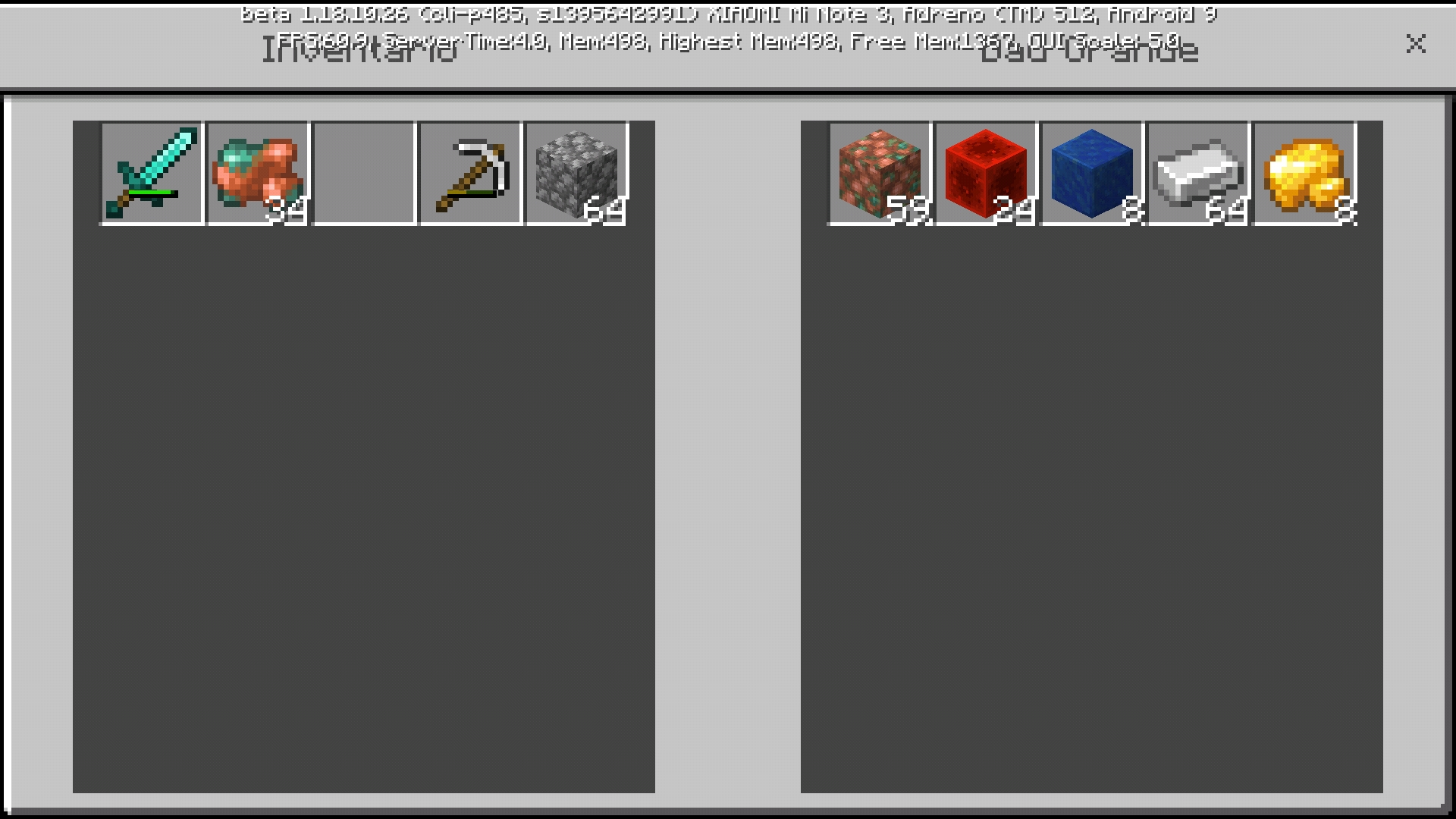 When I try to interact between inventory and chest only can see the first line of each, as screenshot shows.