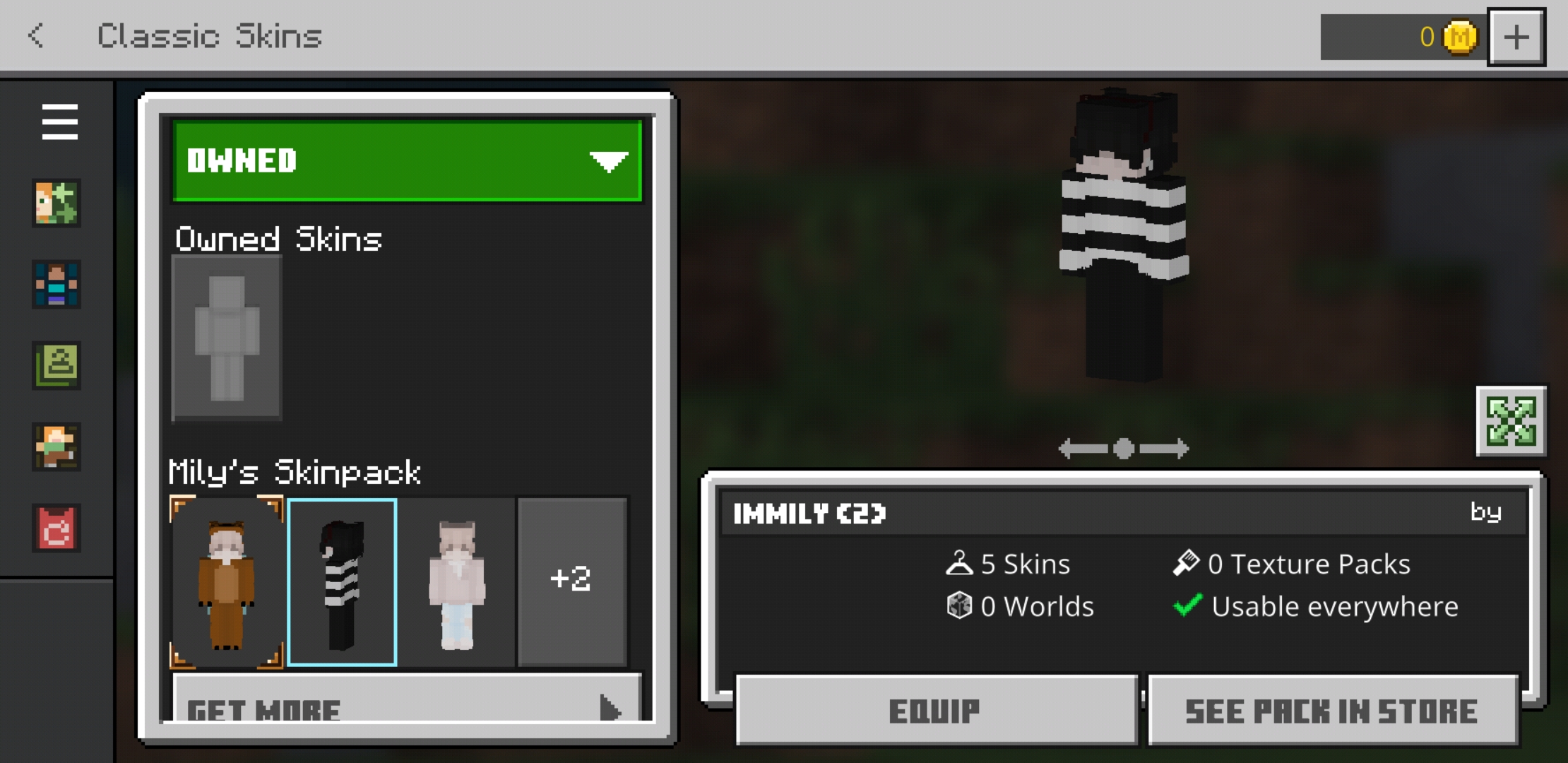 Equipping your own skins at your skinpack does works properly at minecraft bedrock edition (mobile version), it supposed to be shows the Equip and See pack in store button, and like information thingy, but the information and buttons doesn't show at minecraft for windows.