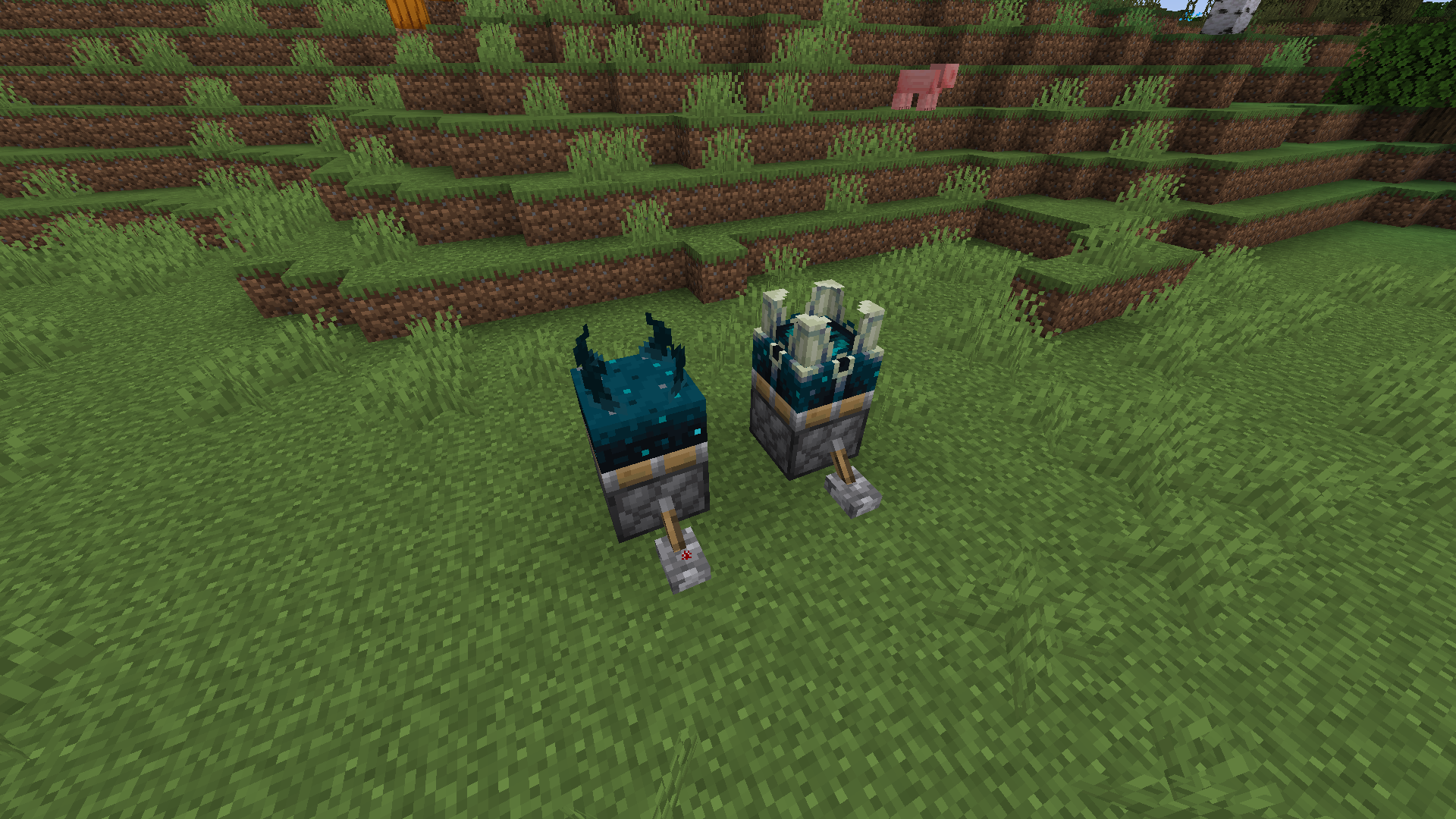 2. Place sculk sensor and sculk shrieker on top of the piston.