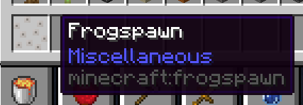 The frogspawn name is spaced in Bedrock Edition "Frog Spawn", which is inconsistent with the IRL name and also not in parity with Java Edition. This also affects IDs name like BE's frog_spawn and JE's frogspawn.