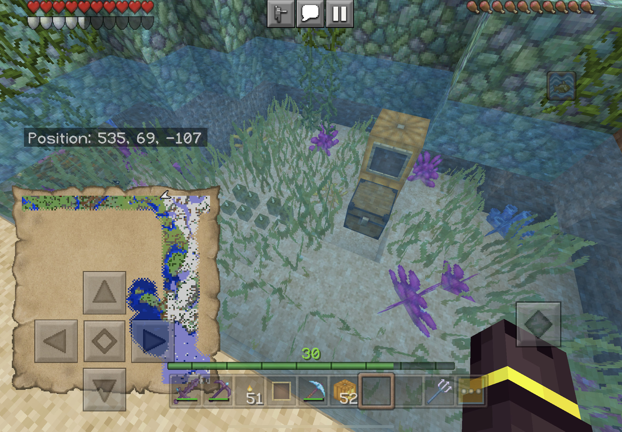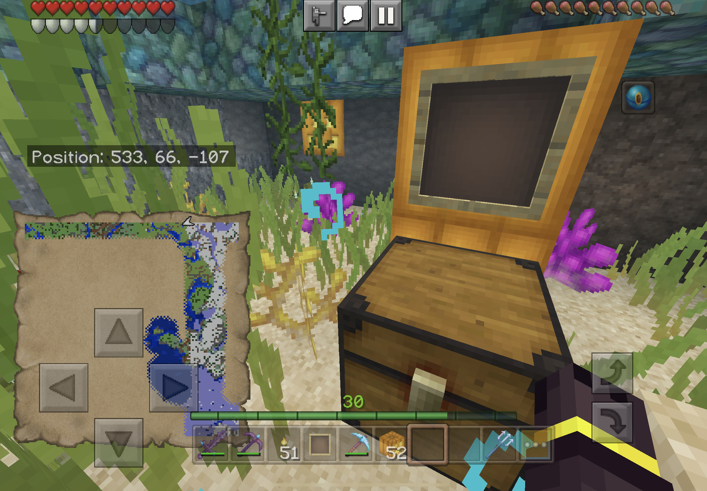 In IMG_009.png My avator is underwater and cannot open the chest by selecting the TOP of the chest. In IMG_0010.PNG MY avator is not underwater and I can open the chest by clicking the TOP of the chest.
