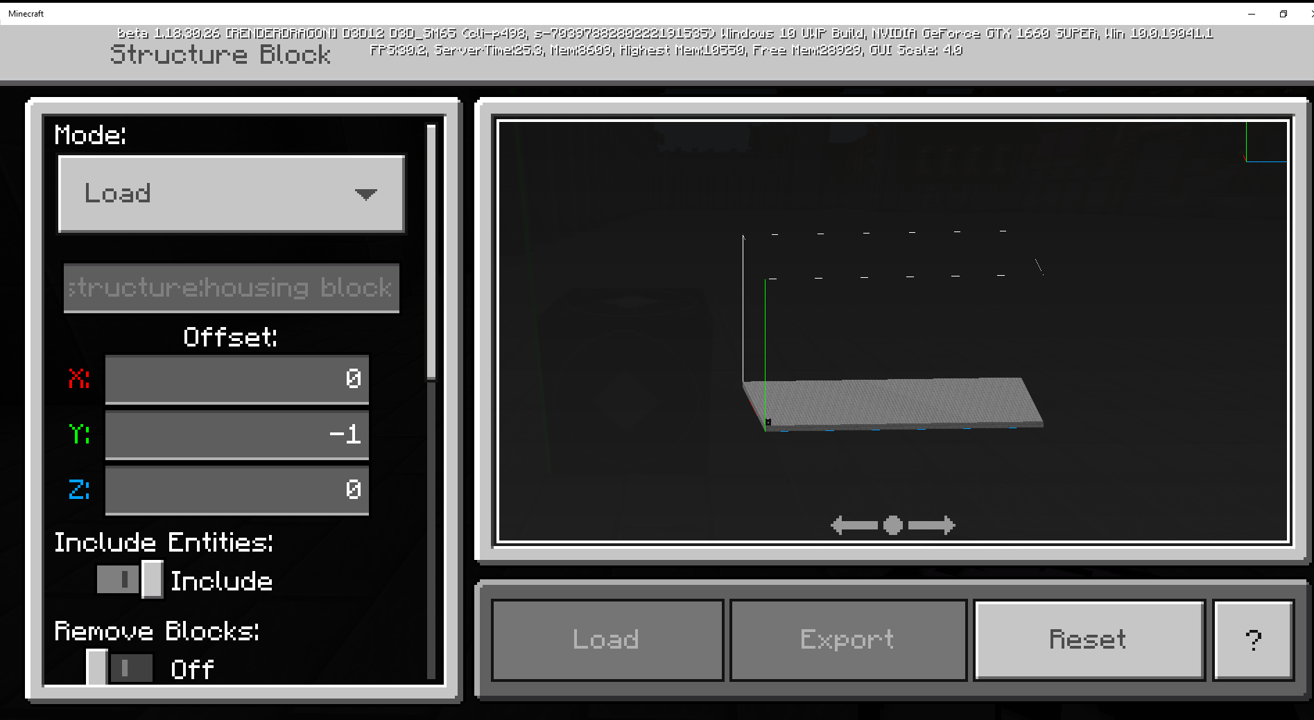 I built a structure in a flat world and exported it into my structures behavior pack. I attempted to load the structure in my main build world but the load and export icons are greyed out even though it finds the file with a momentary flash of the buttons when I hit enter to reload the file into the structure block. I created a new world with the same settings as my main build minus the terrain and it loads just fine. I created an experimental world with with a random seed and it loaded there as well. I have had this issue with other files going into different versions of the same seed world of my main build. It appears to be completely random as other structures in my behavior pack load just fine.