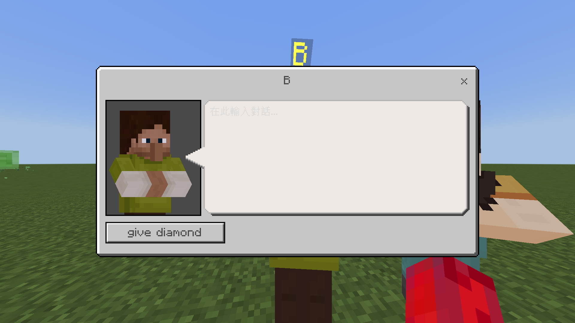 4. creat a button command to npc B.Command:/give @initiator diamond