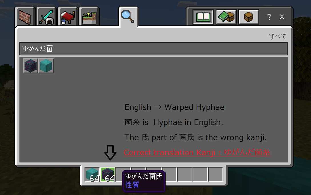 The Japanese translation of Warped Hyphae has the wrong kanji.