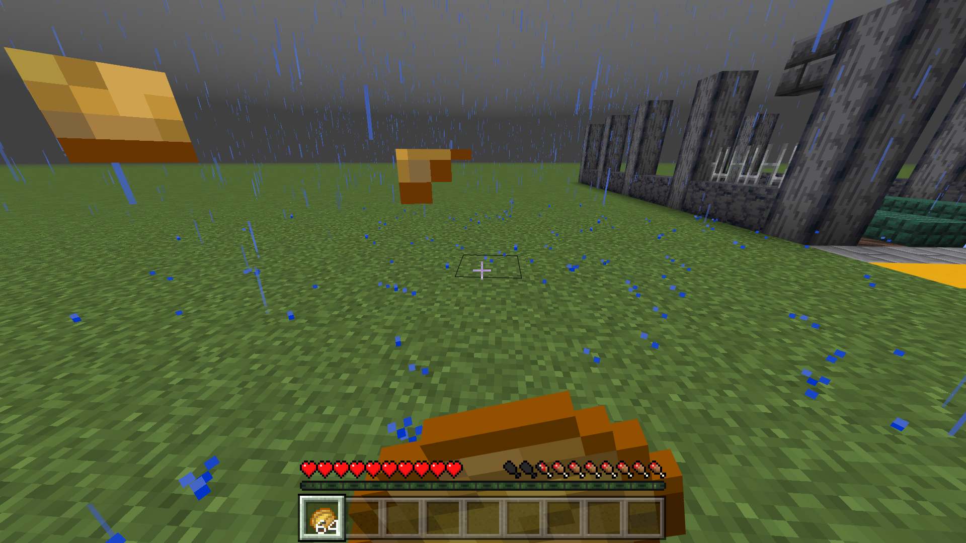When you eat any food to regenerate hunger a brown line blocks a small area of the right hand side of the screen.