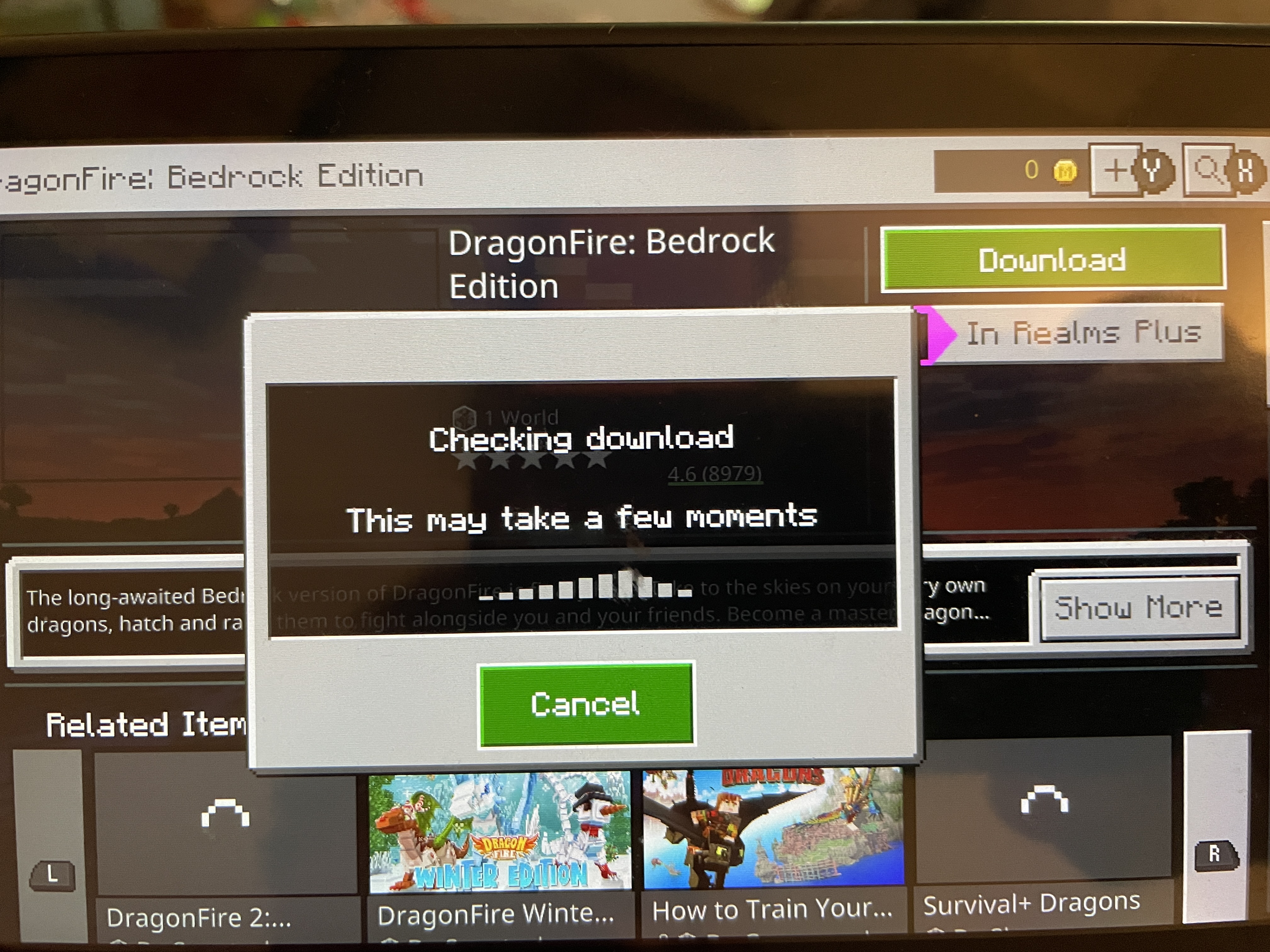 I purchased Dragonfire Bedrock edition two days ago. It appears in the purchased list on the switch. When I try to download it to the switch, though, it brings up the 'checking download' dialogue, which never completes/goes away. If I quit from it, when I leave the store I get the 'communication error' message (although the Switch has remained connected to the internet the whole time). If I leave it, eventually the screen turns off and when I come back, again the communication error. Also each time that happens, I get disconnected from the Microsoft Account.