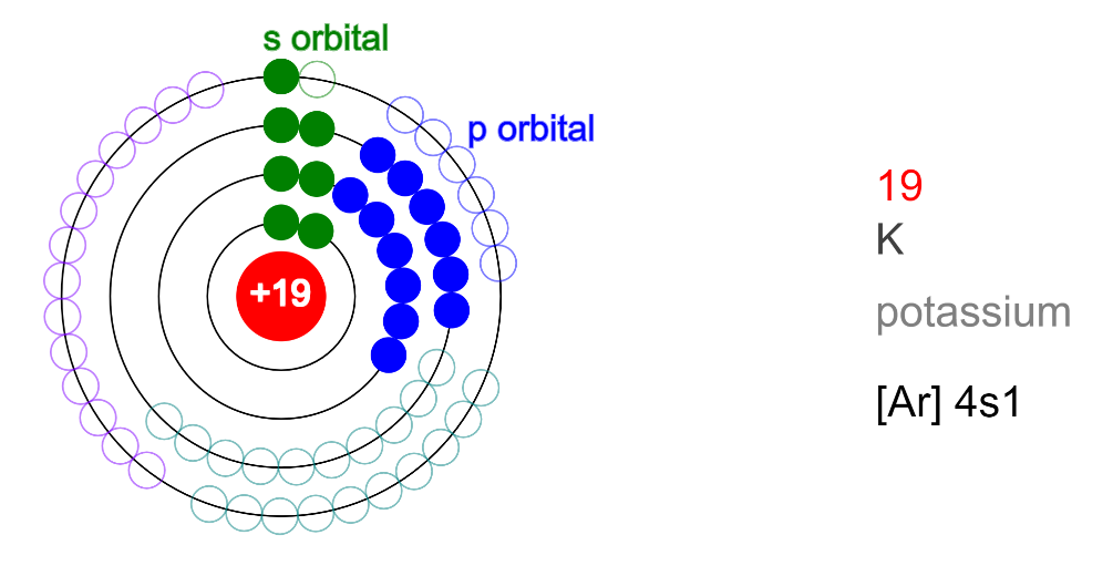 When creating atomic models in the element constructor in MC:EE, elements from period 4 and on (from Potassium and on) are not displaying correctly. For example, potassium should have 4 rings of electrons based on electron configuration rule while MC:EE only shows 3 with the electron located at the wrong ring.