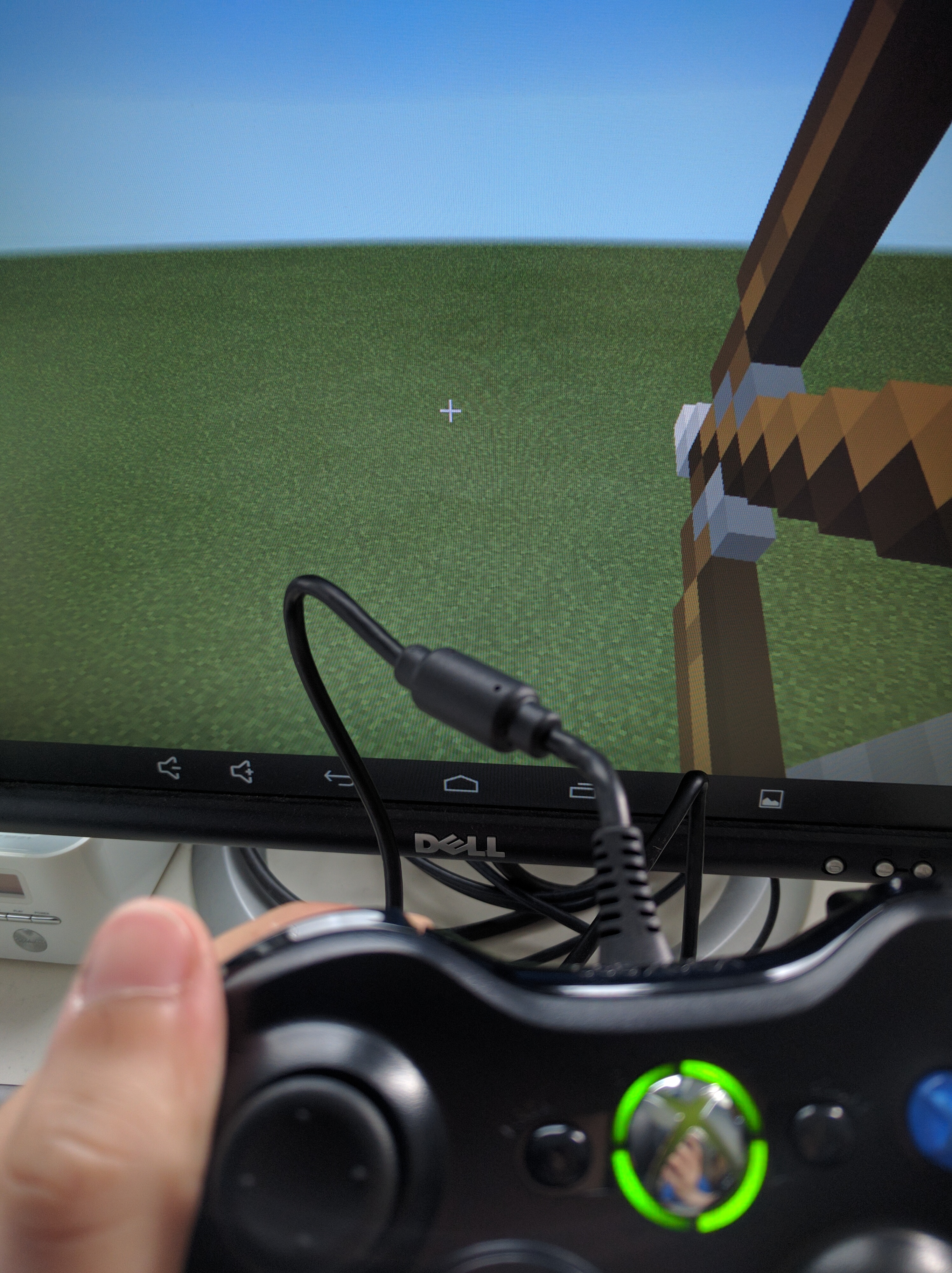 I got the official USB Xbox 360 controller that works well with mcpe, but there is a really annoying bug, where you look the opposite way to where you are going (eg, look left while going right) the screen jitters and its really annoying.