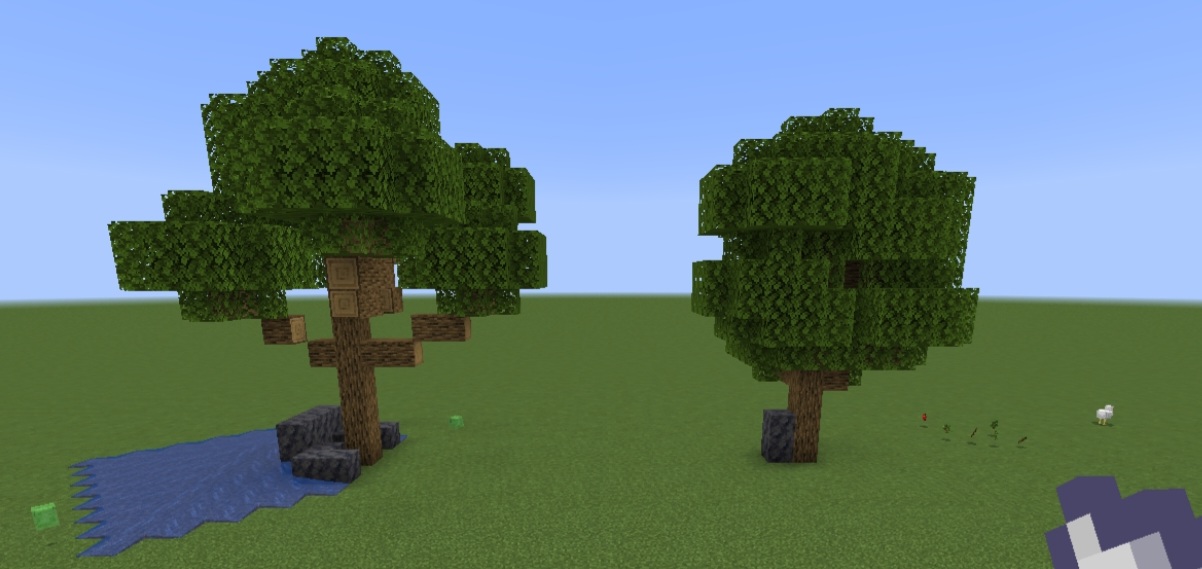expected results: some of the large oak trees should feature some longer branches and less clumpy similar to java edition gives more realism