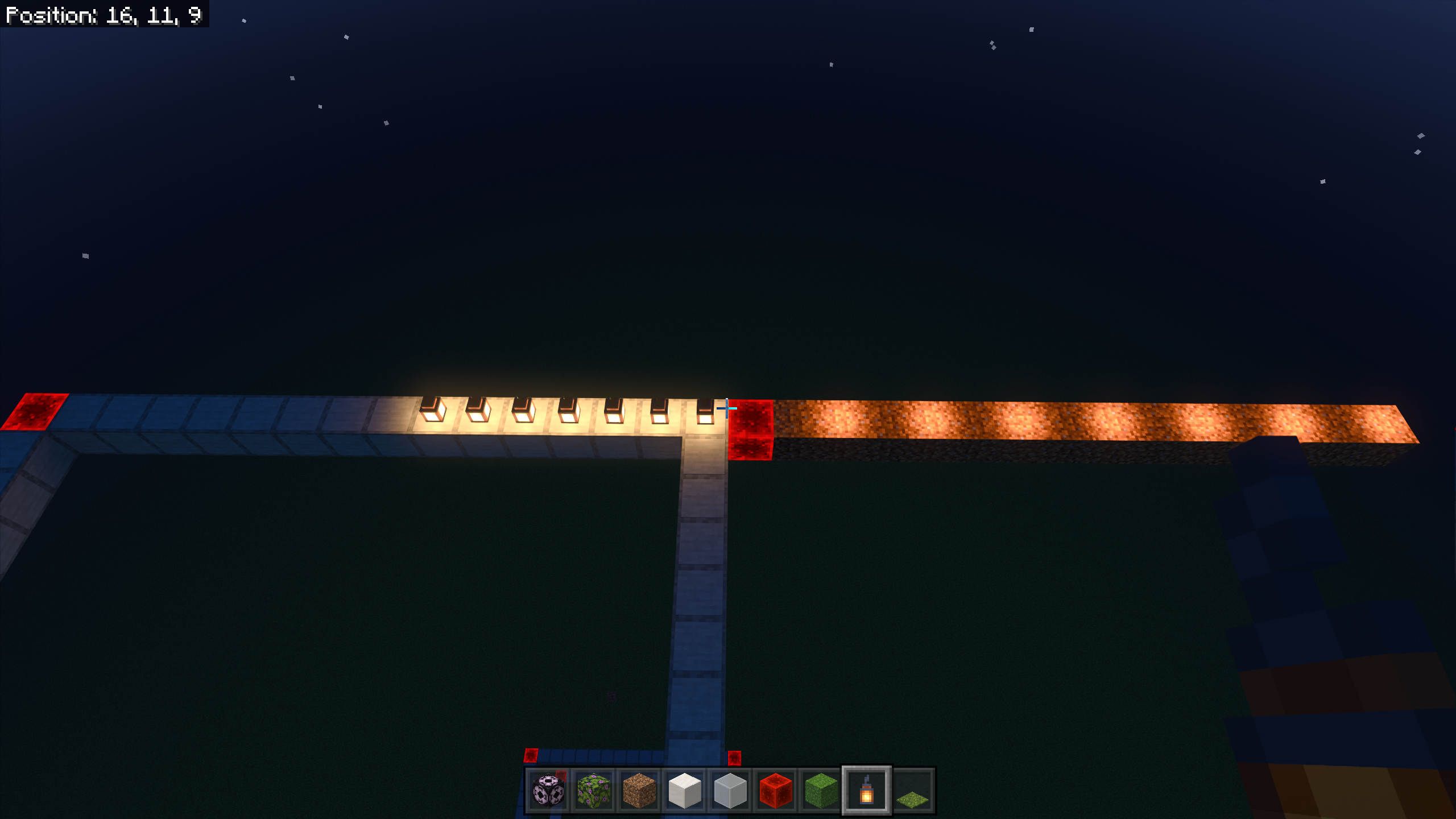 Here you can see how row of lanterns cast a point light every other block in positive direction equal to double the chunk relative X coordinate of each lantern.