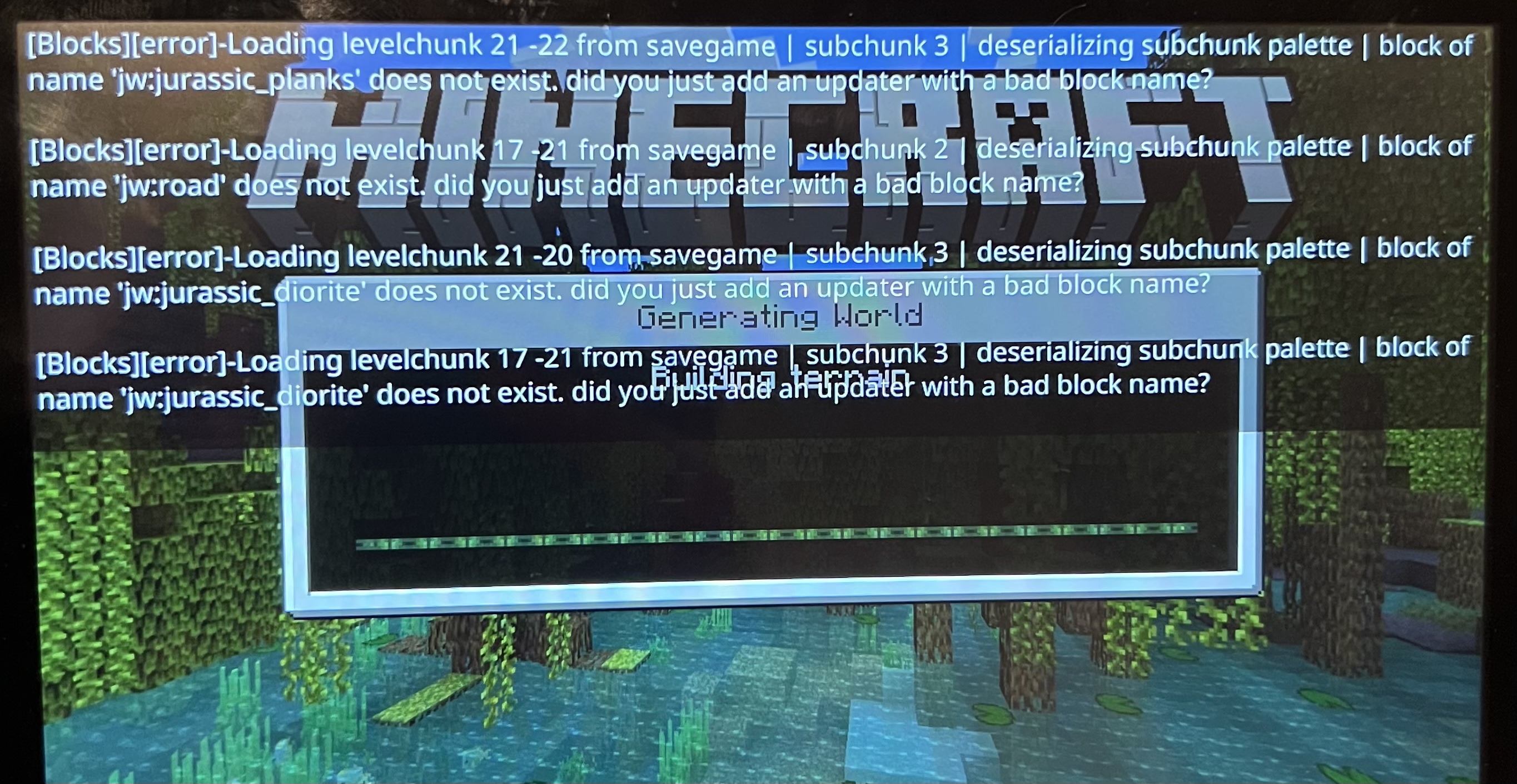 It looks like someone else is having the same issue as me with Jurassic world on switch. they’ve reported it in the last few hours but are getting error codes. Their issue number is MCPE-160883