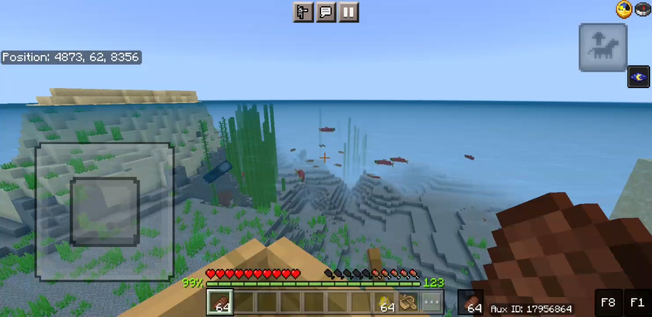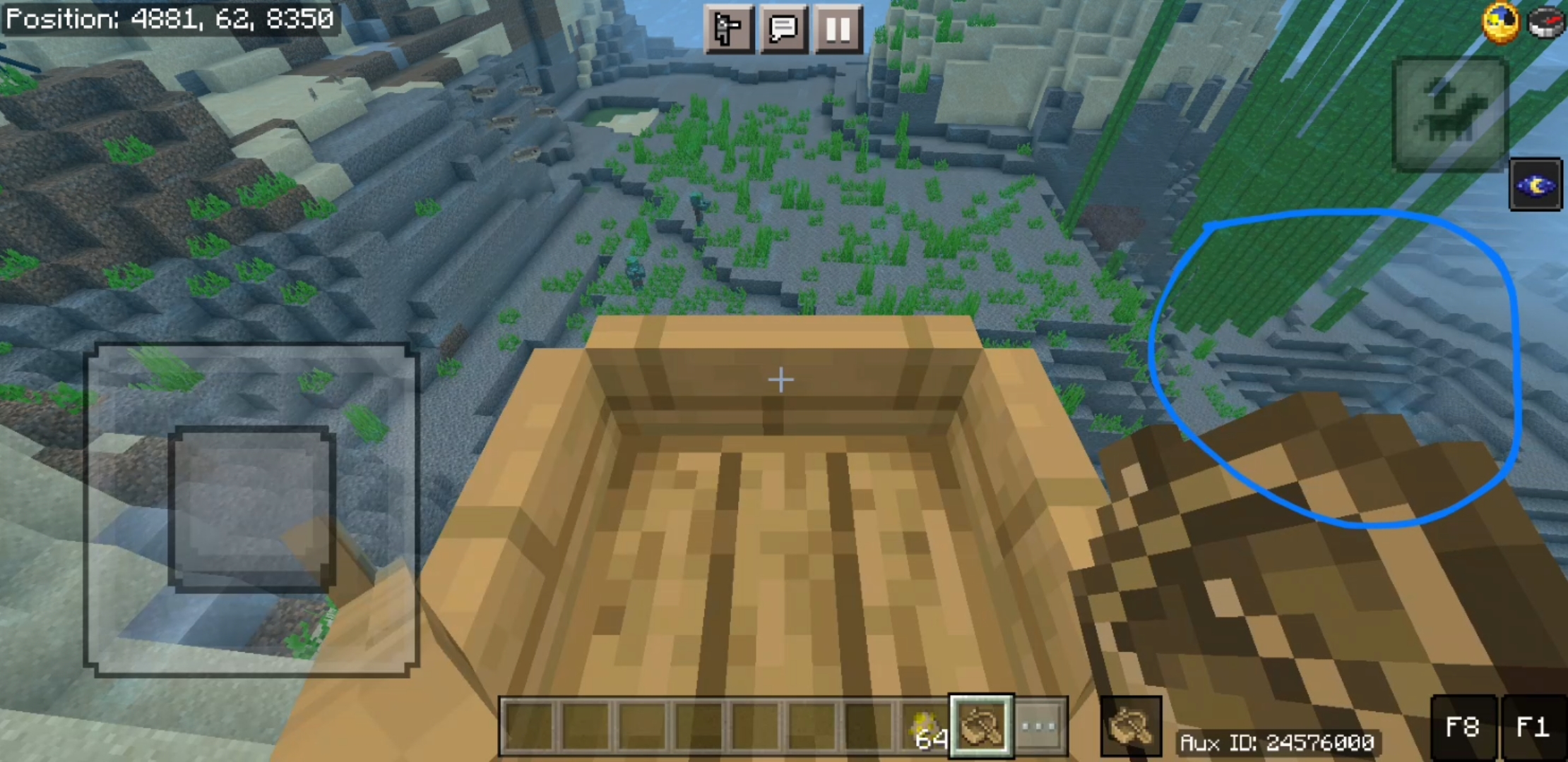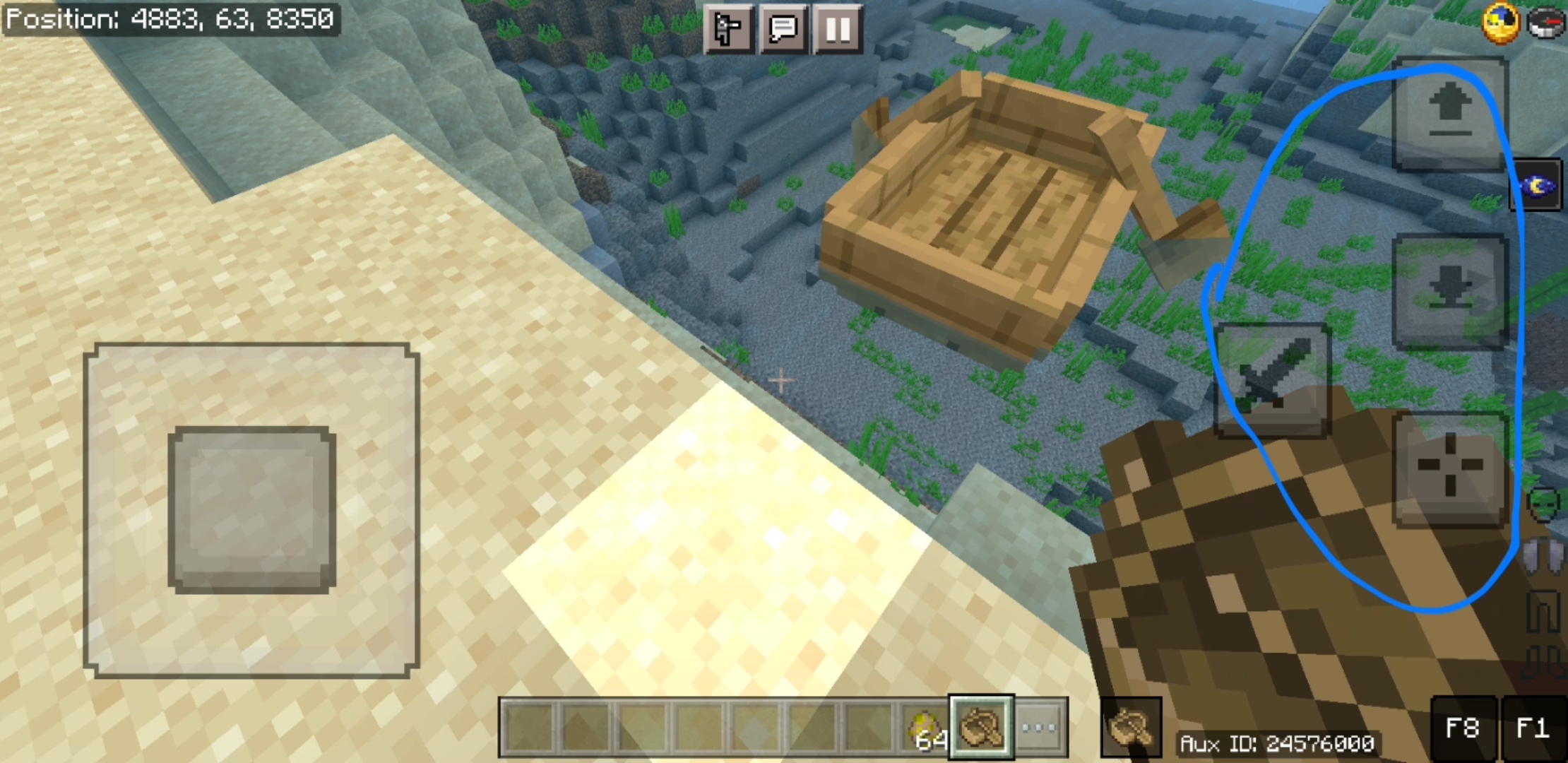 Touch control in boat dont have any buttons so we cannot break block and eat anything.