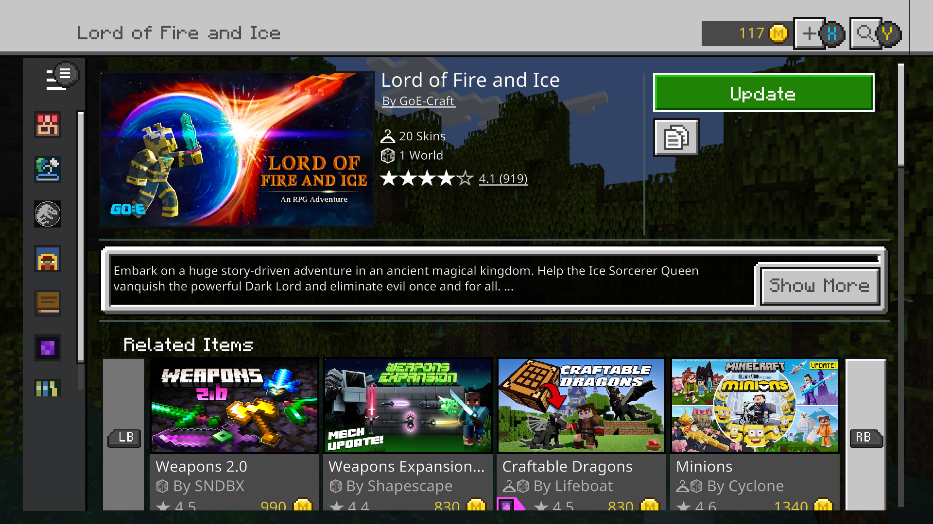 Been trying to play a world template and it isn't updating at all. It says download but once it is clicked it just goes to world template screen where it still says update. Can't play the world template as it need the update to progress to the create world screen. Update doesn't download and can't bypass it to play the world template.