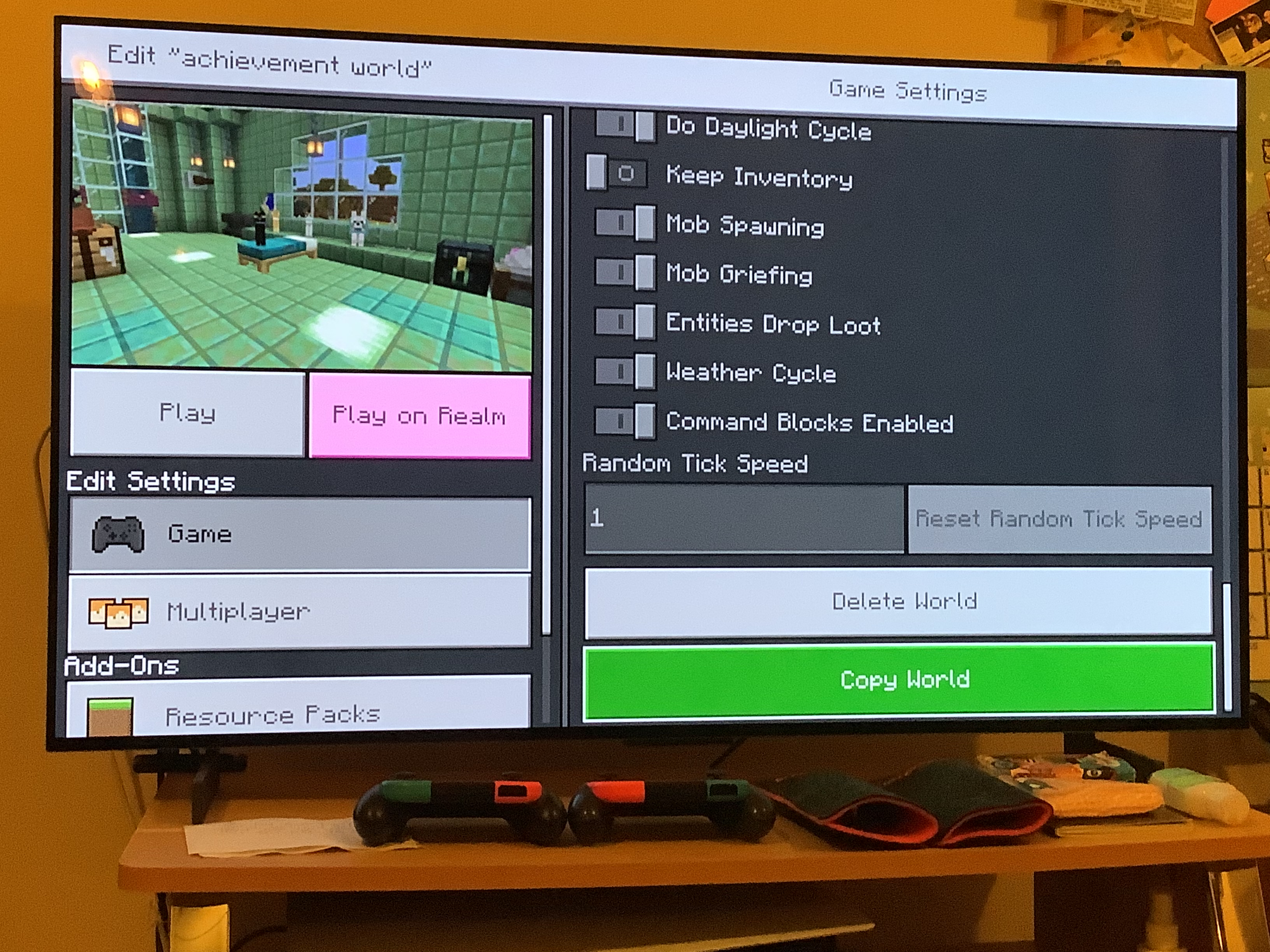 I seem to be having an issue with copying my world to back it up……I’ve attached a picture to show what happens when I try to back up a world….so I go to my world then go into the tab with the pencil for options for my world. Then in that menu for my world called achievement world I scroll down to bottom where it has copy world. I click that and it starts to load that it is copying my world and jumps to 40% Almost instantly then seems to do nothing else. I have added extra photos to show where exactly I go in menu to copy my world…. Hope this helps as video showing what I do dosnt seem to wanna upload here so hopefully pictures will show what I’m trying to explain about when I say copy world (still a issue as of 16/12/22