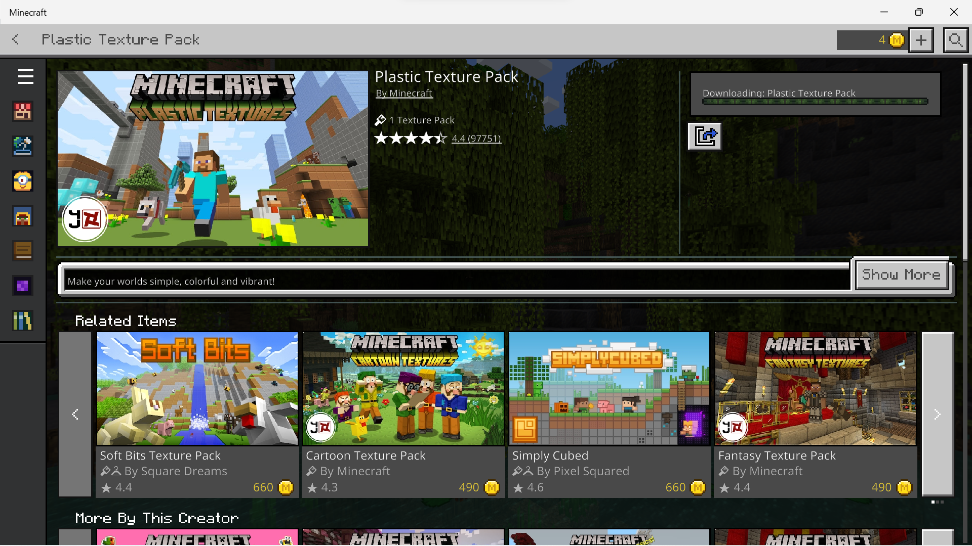 When a pack needs an update, it automatically starts the process and shows the progress bar. but it never actually finishes updating. it just says downloading and an empty progress bar. it stays like this forever and makes it so you can't use it if it's a world (because there isn't a "Create this world" button). these items have been building up too. I open minecraft and I see a bunch of my marketplace purchases still stuck or even a new item get stuck.
