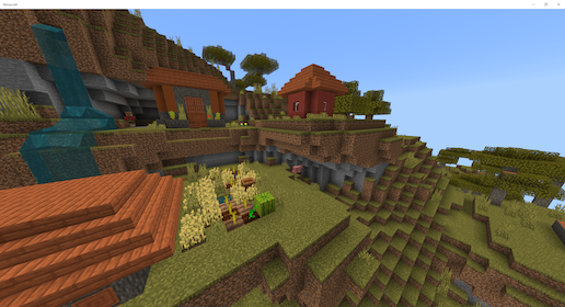 For comparison, on MC: Java the house platforms are hardly even noticeable on flat terrain, since they generate only underneath the houses and do not elevate also the terrain around them.