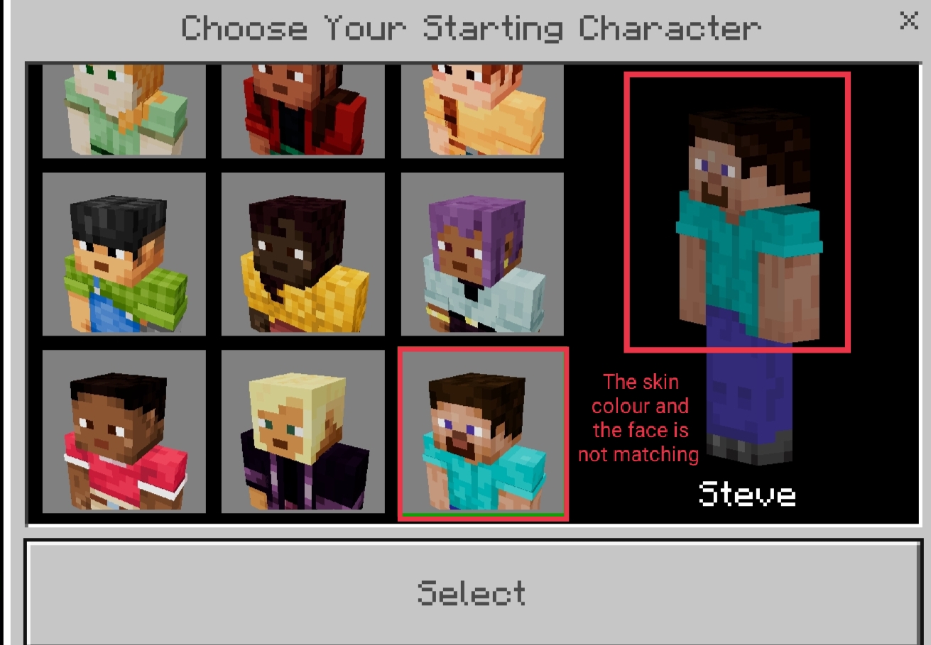 The New released skins and new Steve and Alex are not matching as it was shown (I guess this happening because of character creator because there are limited colours and colours which doesn't match the skin) please fix this because the Steve is looking Terrible is bedrock edition