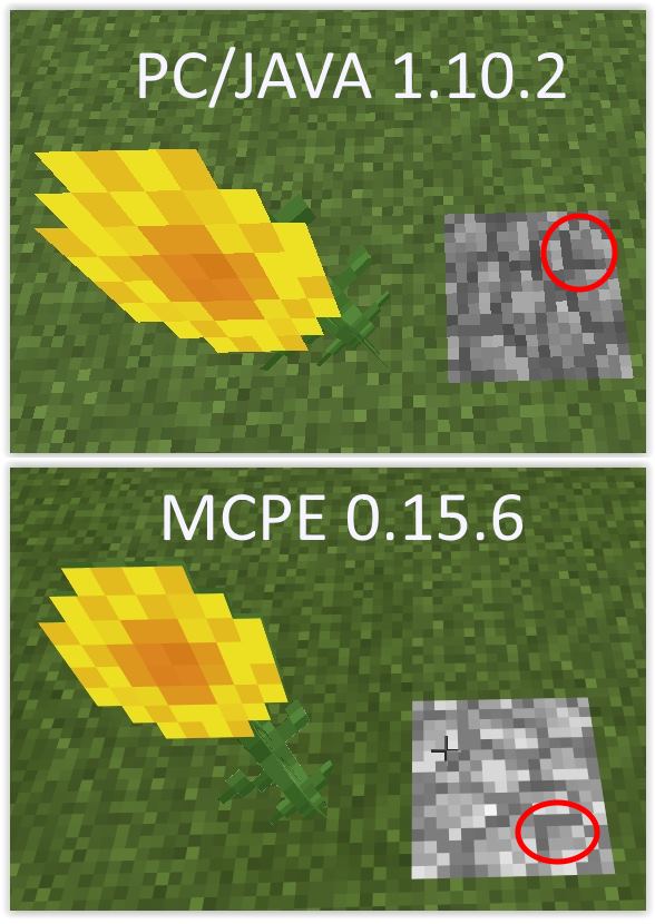 Using Sunflowers and cobblestone, you can clearly see the difference (Note the pattern on the cobblestone, and that the Sunflower should be facing EAST):