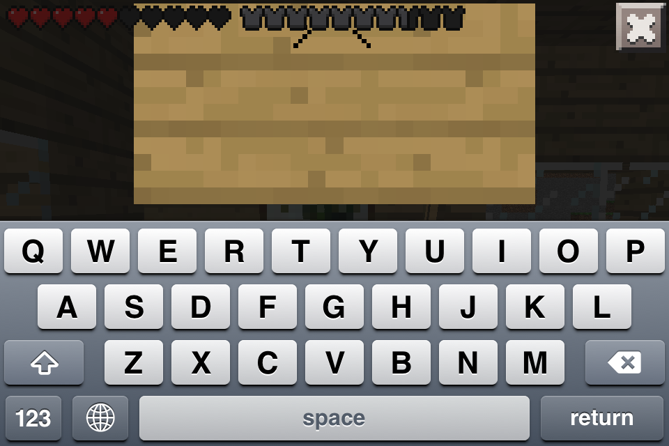 When I try to type on the sign, the armour and health icons appear above the sign and thus obstruct my view.