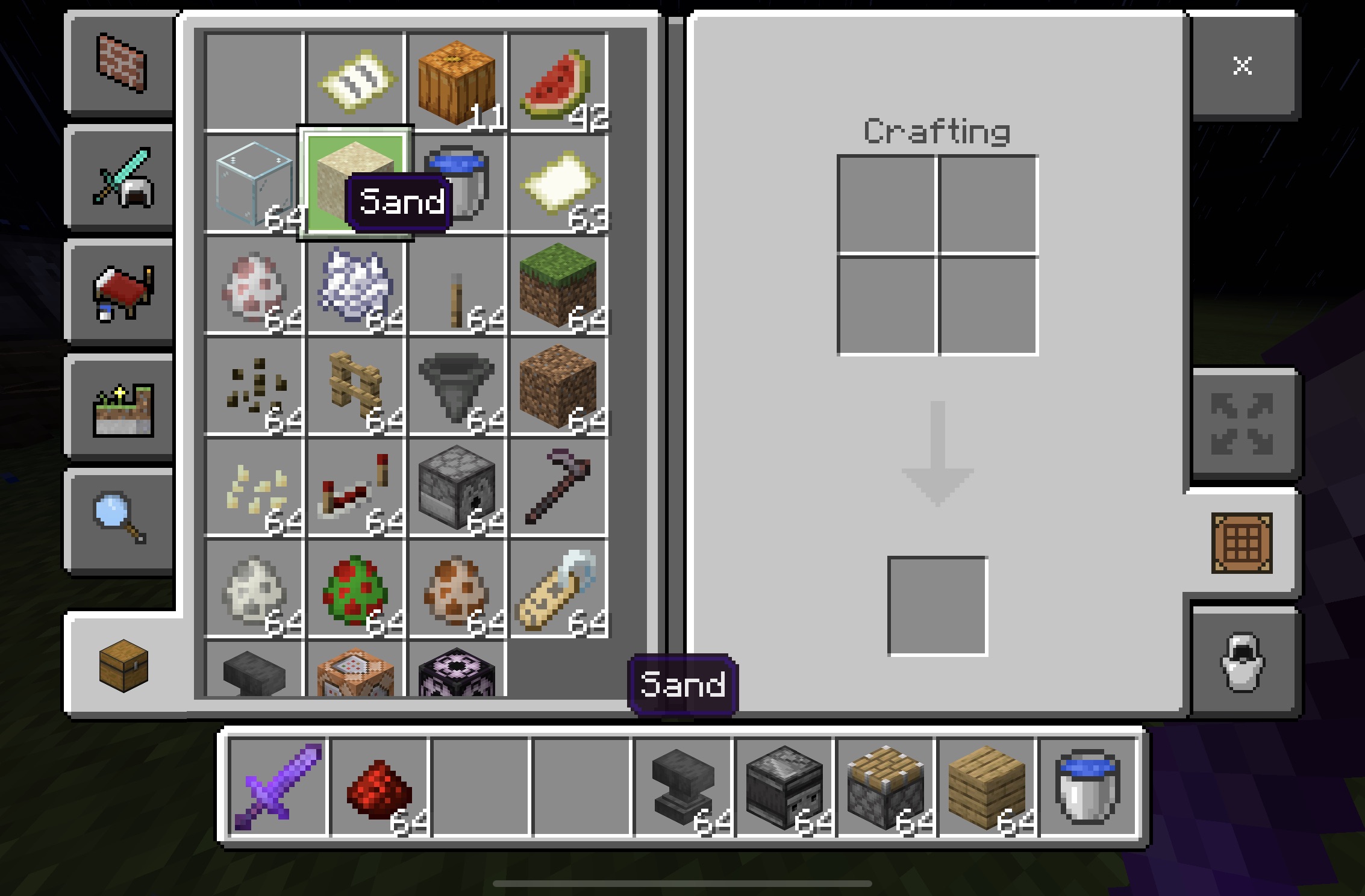 On a side note, I also can no longer craft many items quickly without having to wait a second or so between each click. The only other option is to craft full stacks by tapping and holding for three seconds, but I can’t quickly click until I reach a specific number.
