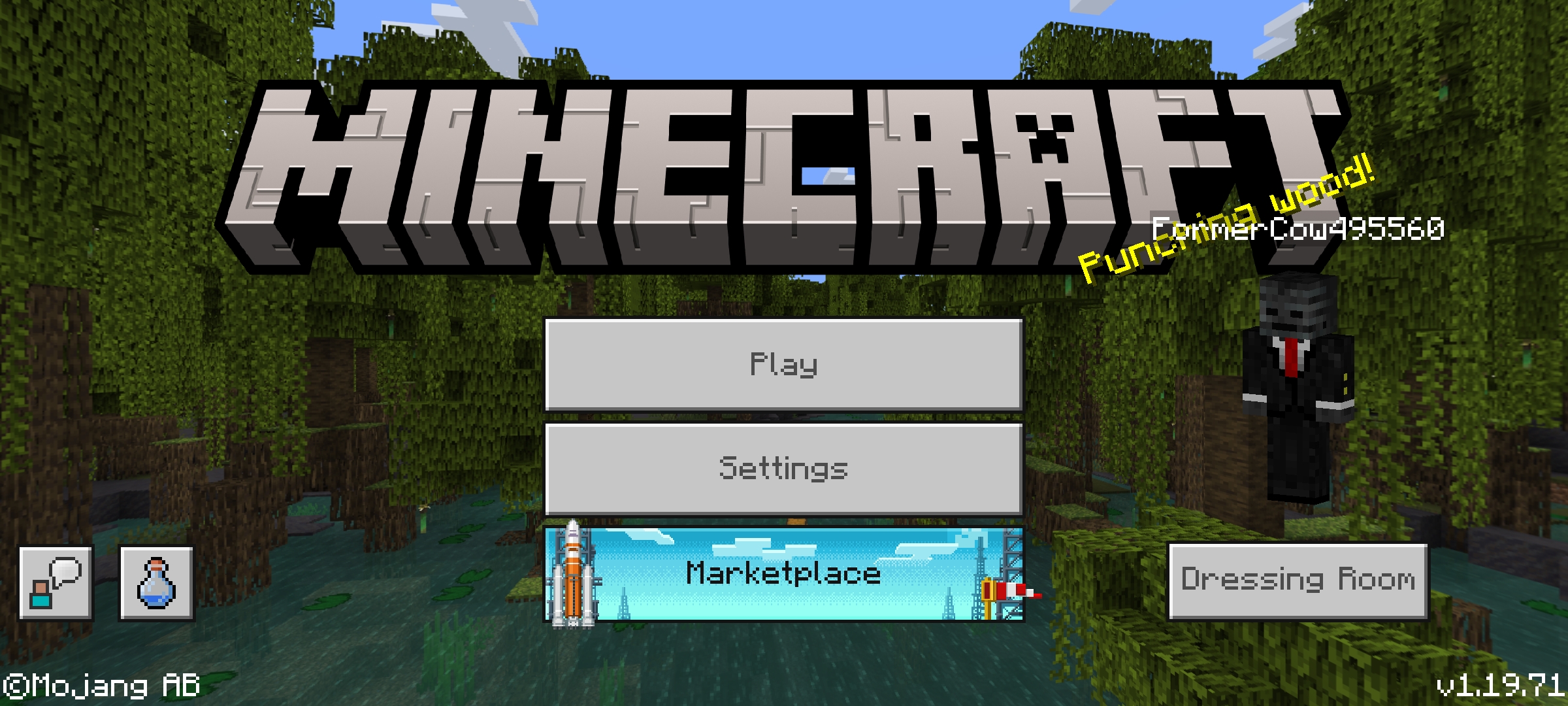 Gamertag overlaps with yellow splash text and the Minecraft logo when on GUI scale 0 (mobile)