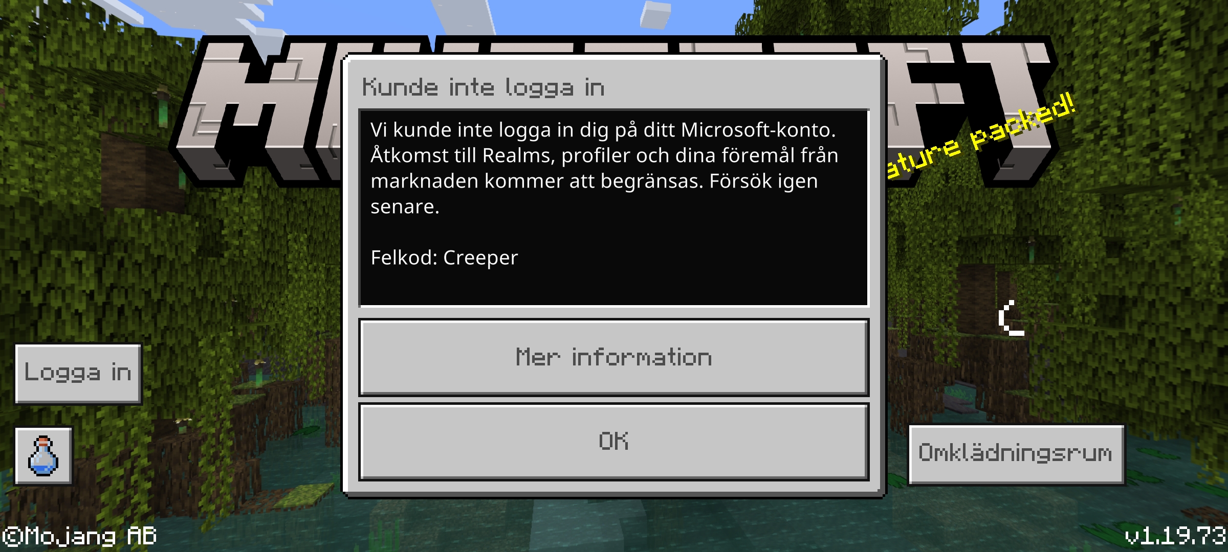 Hello, Im stuck at loading screen a little bit and I get the code of creeper when I try to sign in.