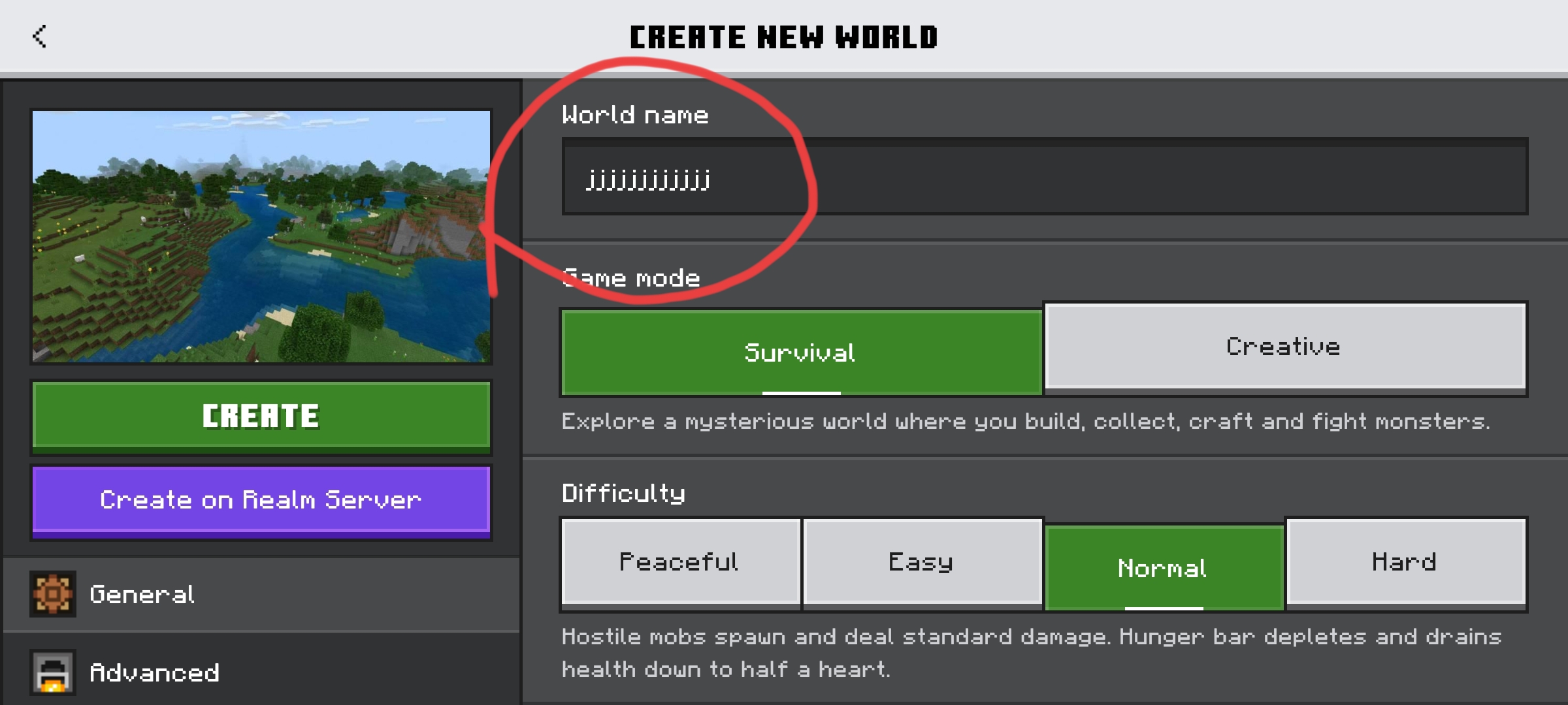 When writing the lowercase J in the world creation screen, it looks different than the one in the original mojangles font