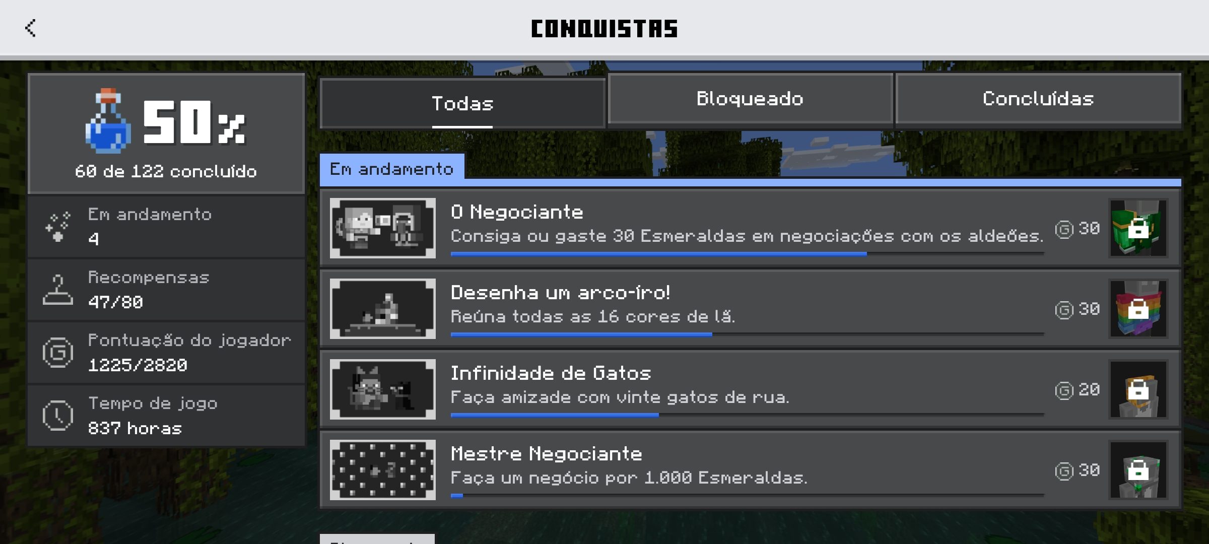 I've been doing my achievements normally, but I had a moment when I uninstalled the game and when I installed it again it wasn't counting anymore, I've tried to do everything, I created a new world, switched accounts, deleted and reinstalled the game and nothing, still no keep track of my progress and my achievements