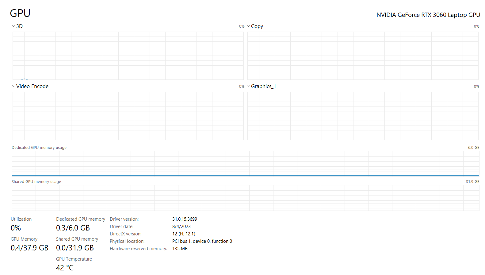 However, the screenshots posted here don't seem accurate. On task manager (Under your GPU performance) select any dropdown and change it to "Graphics_1". Here you'll see that Minecraft is using about 20 - 30% of the GPU. Still nowhere near what it should be, though.