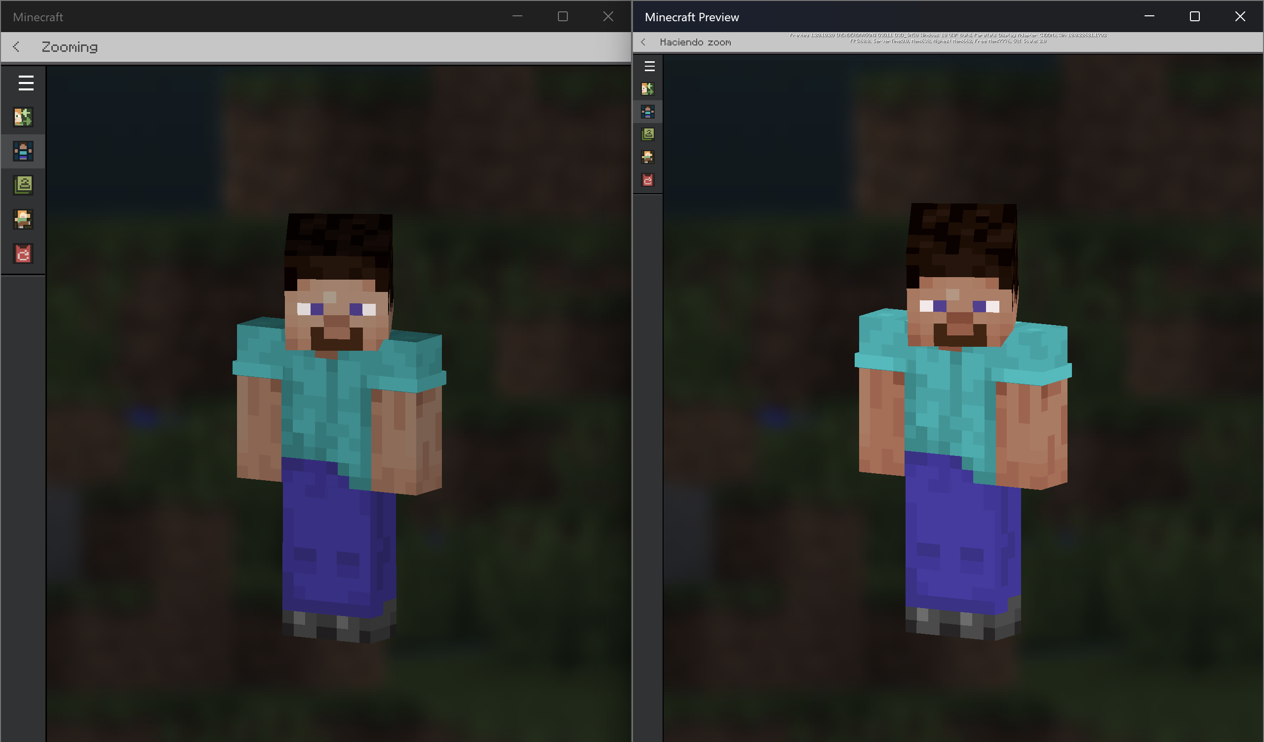 As of the last preview, there have been changes in the color palette in minecraft persona and some other skin that I had customized has been damaged, leaving the mouth hidden, for example, please fix this.