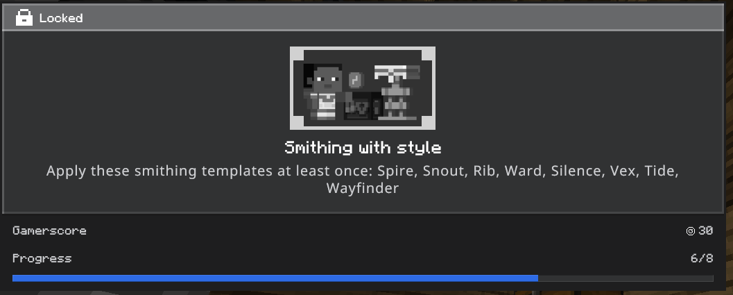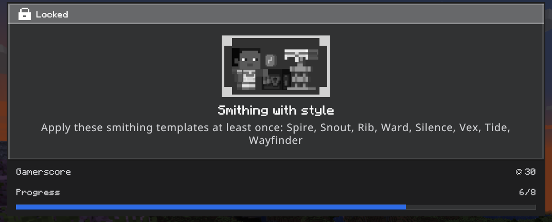 I recently tried to make this 1.20 achievement, as you can see in the following image I have used all the templates that are required in the achievement, but it only detects 6 of these templates