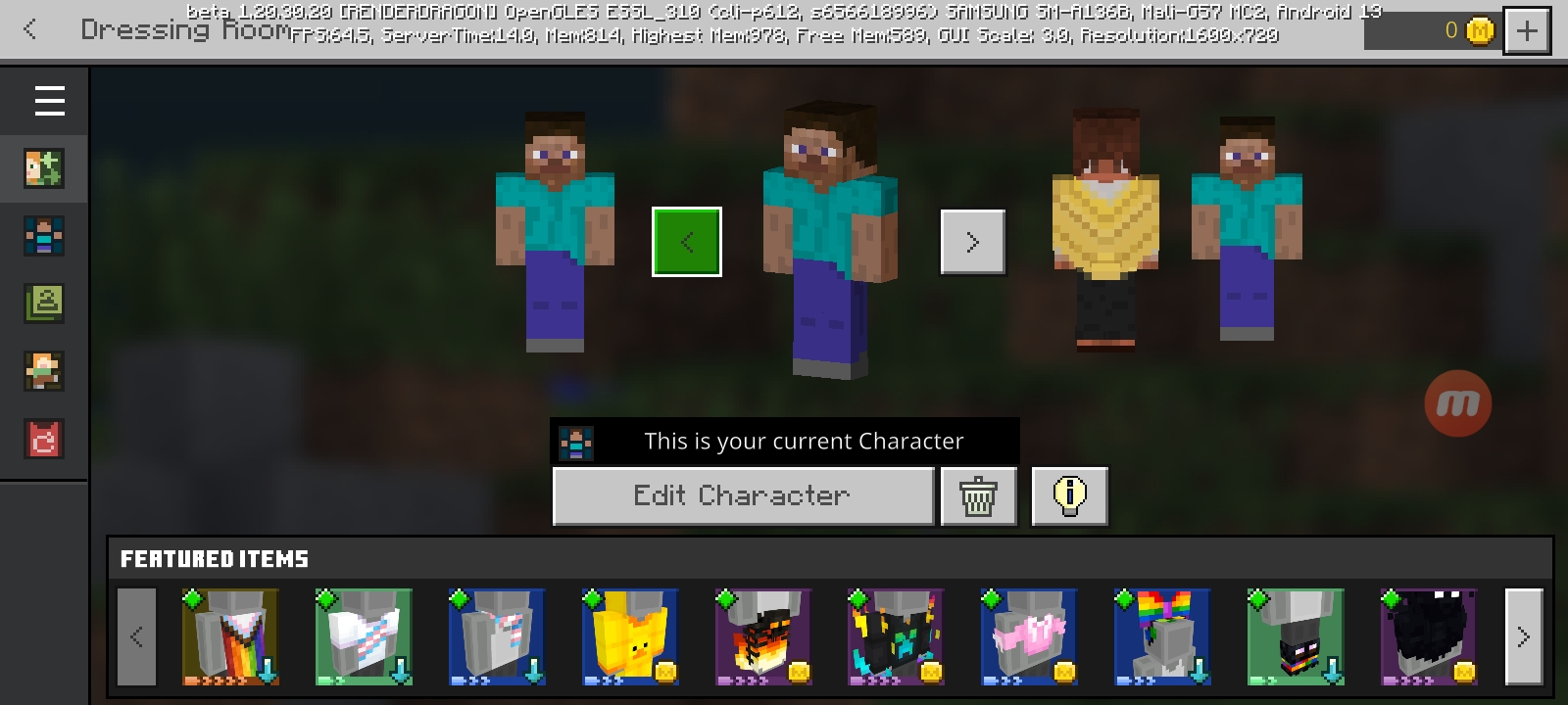 My character switches to Steve when I load a world