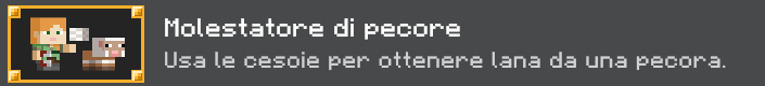 In Italian, the achievement "Have a Shearful Day" is translated to "Molestatore di pecore", which means "sheep molester/harasser".