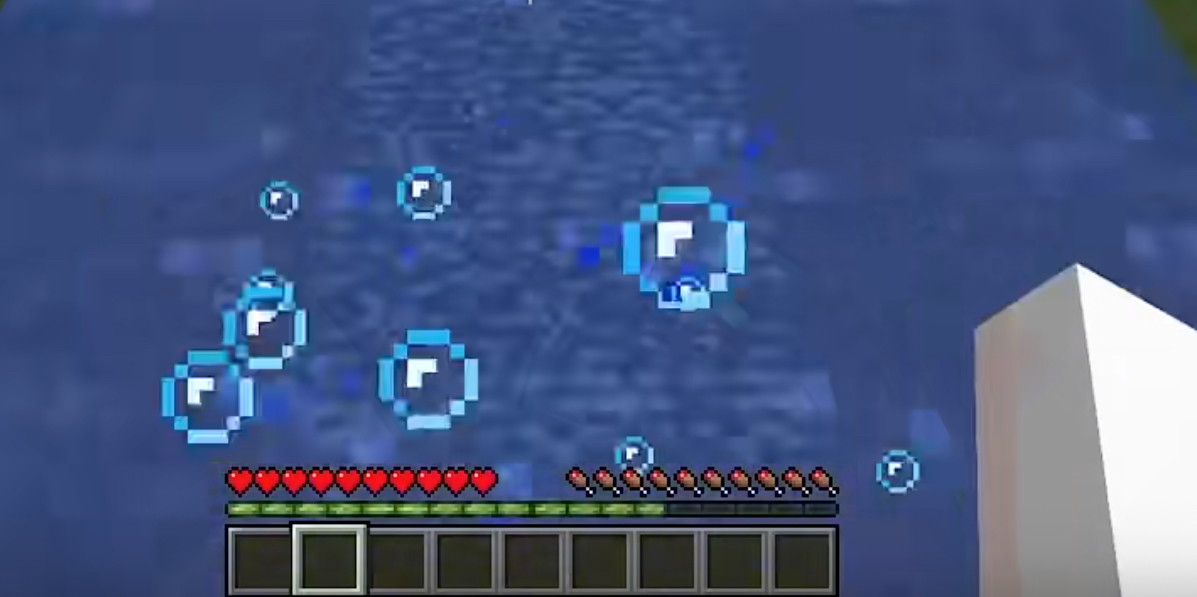 In Java Edition, When we jump into the water, there will make some bubble particle on the water.