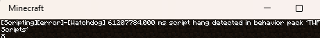 [Scripting][error]-[Watchdog] 61207784.000 ms script hang detected in behavior pack 'my scripts'
