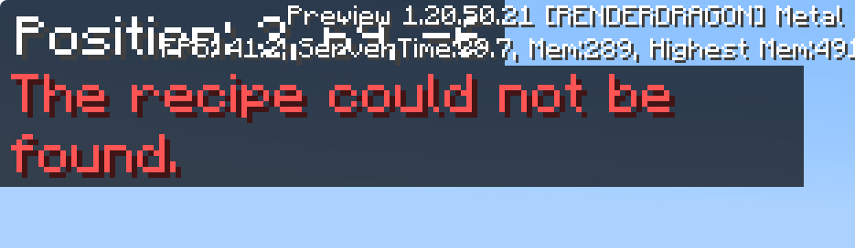 When you trying to unlocking crafter recipe it won’t showing up, both by collecting material or unlocking with command won’t work.
