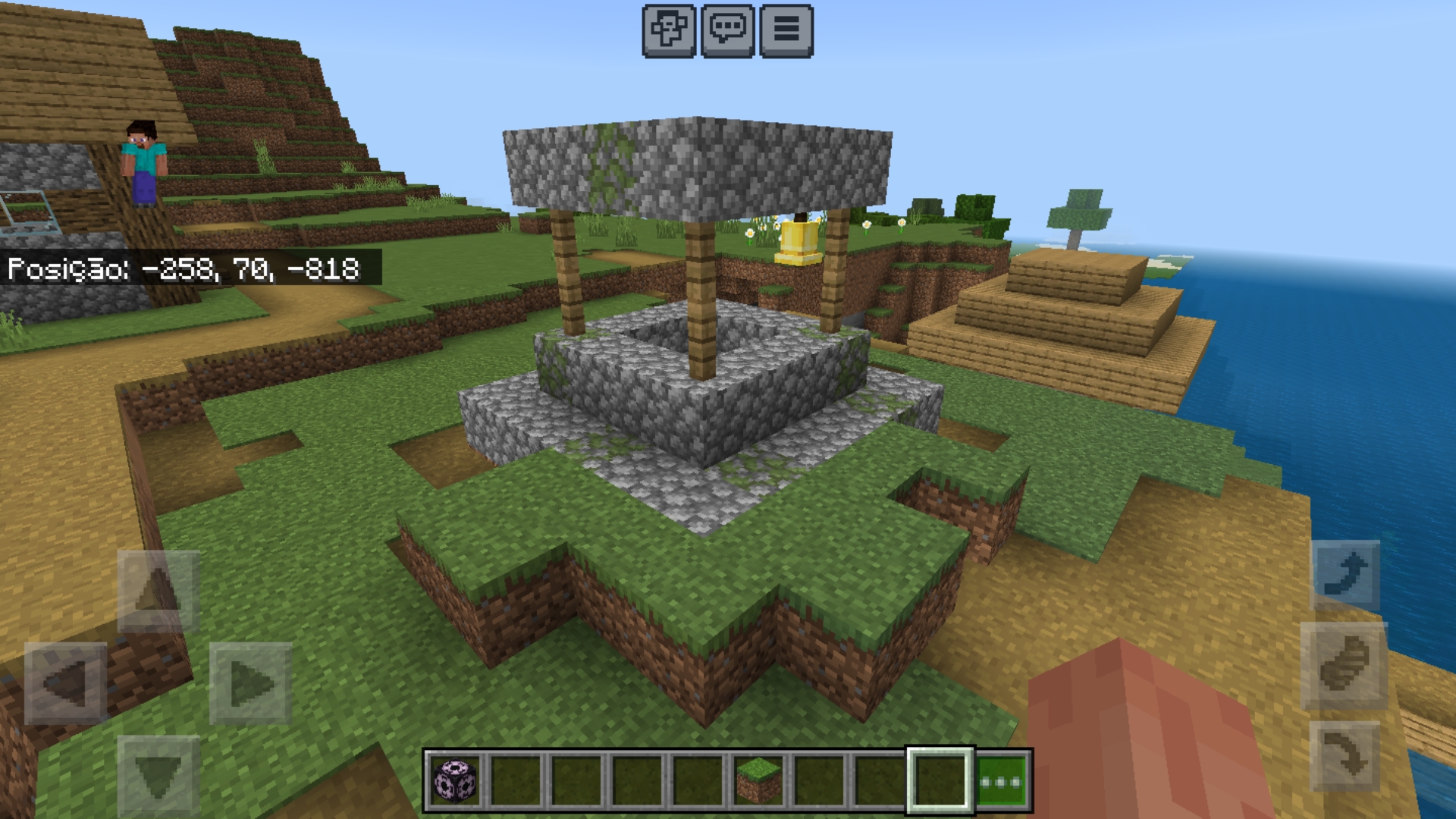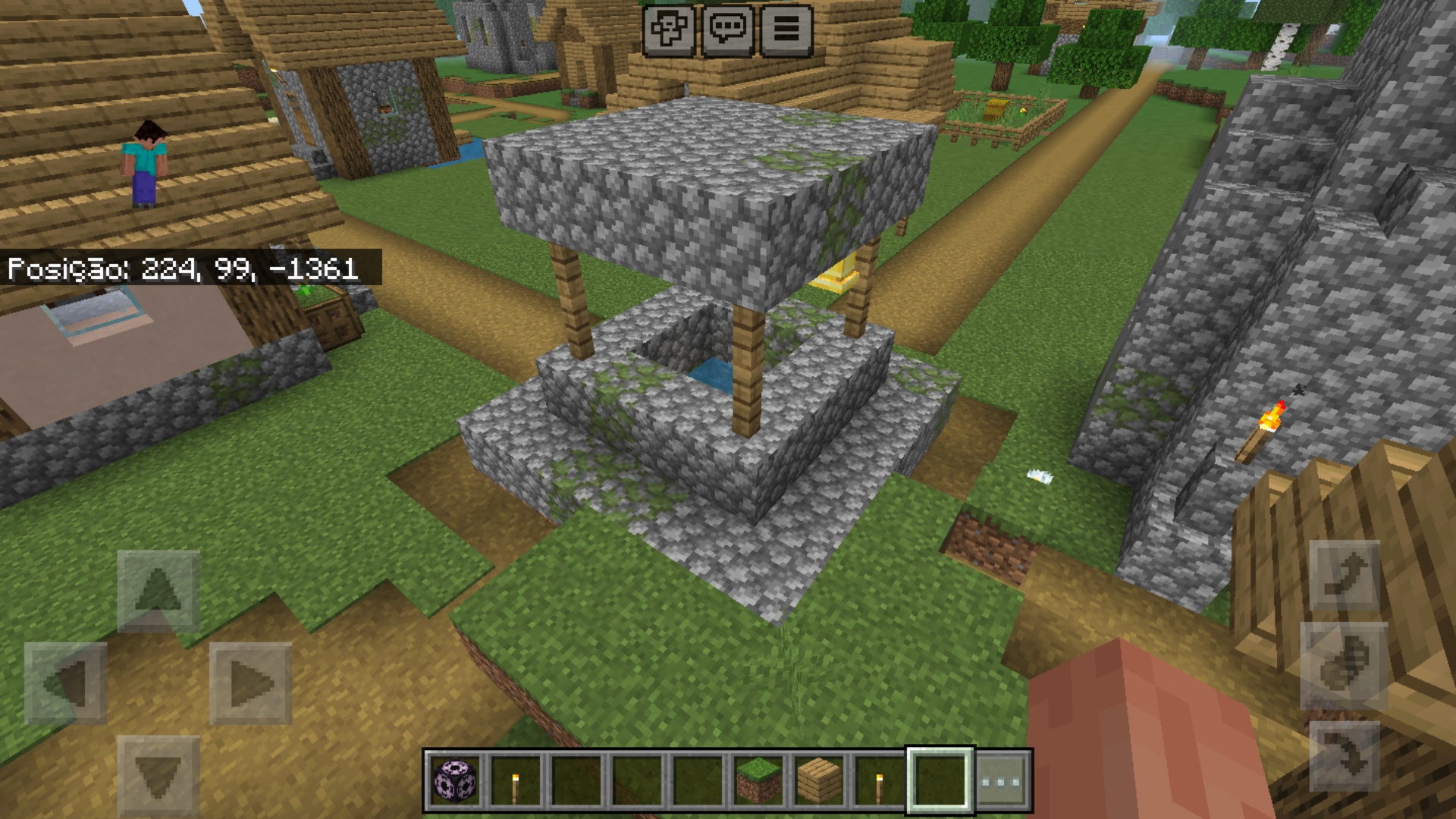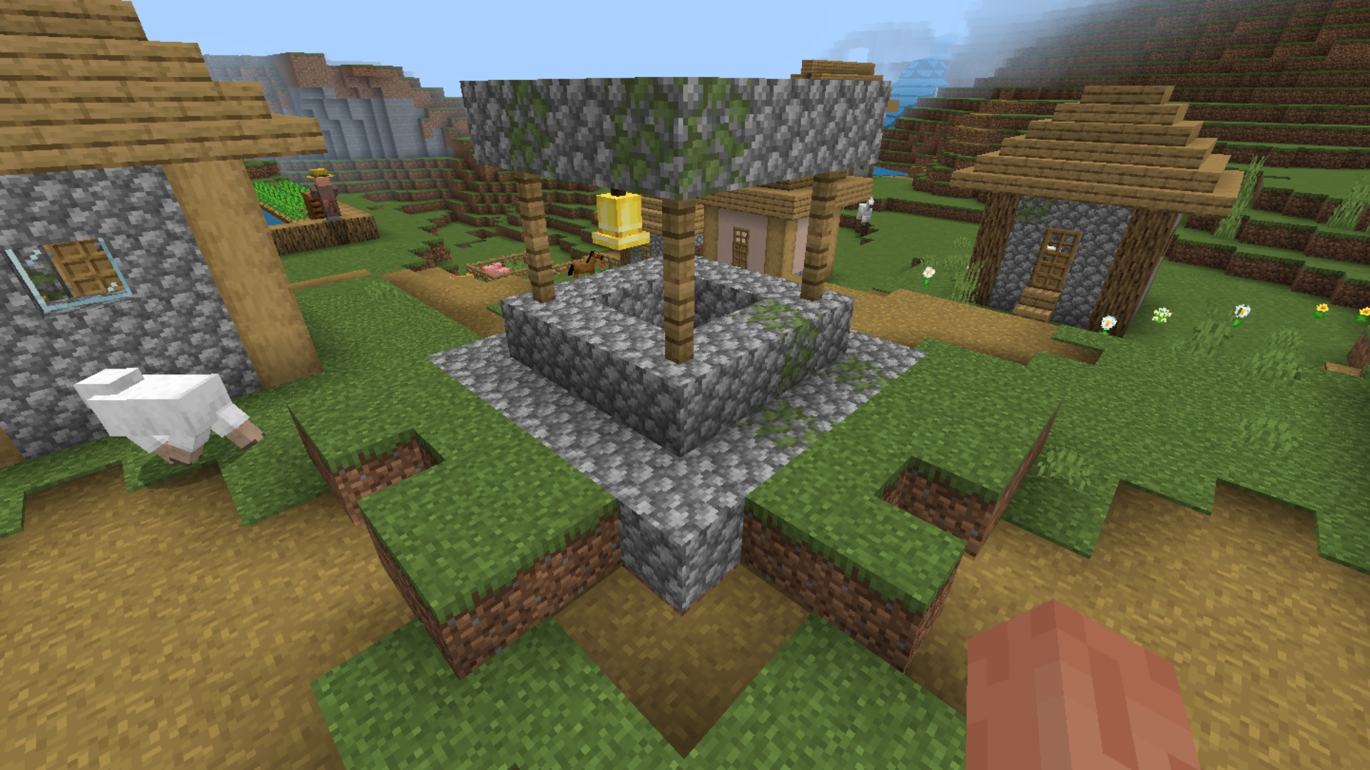 One of the meeting point from plains villages (the one that look very close to classic villages) always generate with grass blocks where it should not, everytime i find this kind of meeting point, it consistently generate with grass on a similar shape. These blocks cover the dirt path and stone from the meeting point.