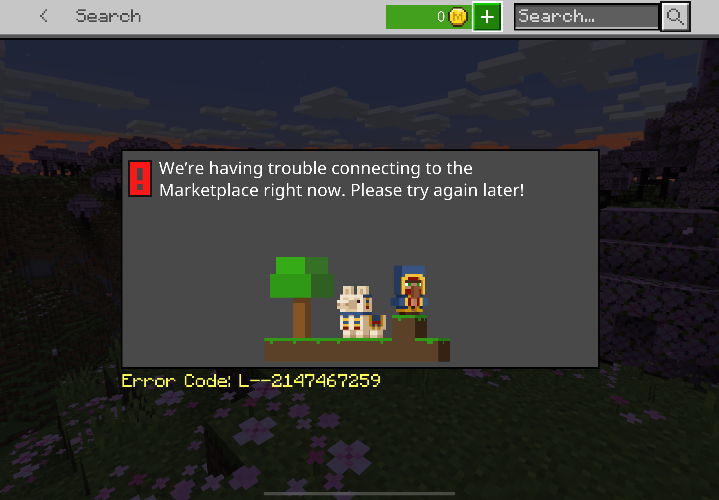 "Hmm, Marketplace is having some issues. Please try connecting later. L–2147467259"