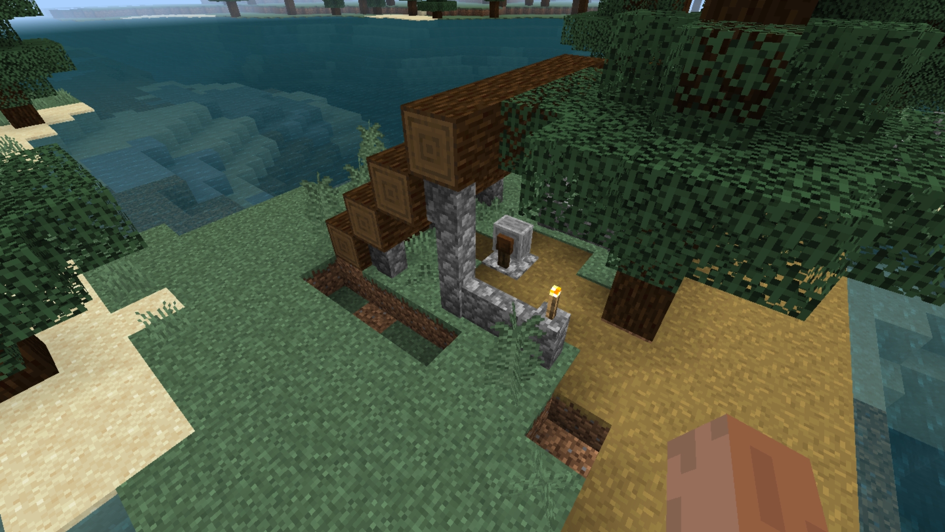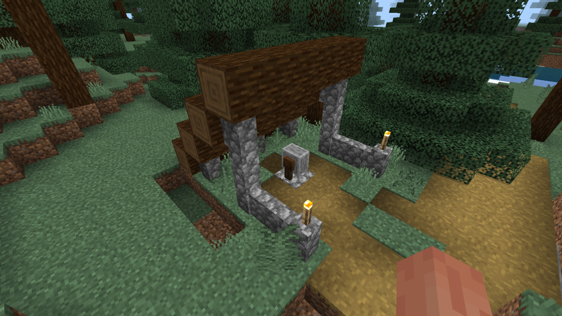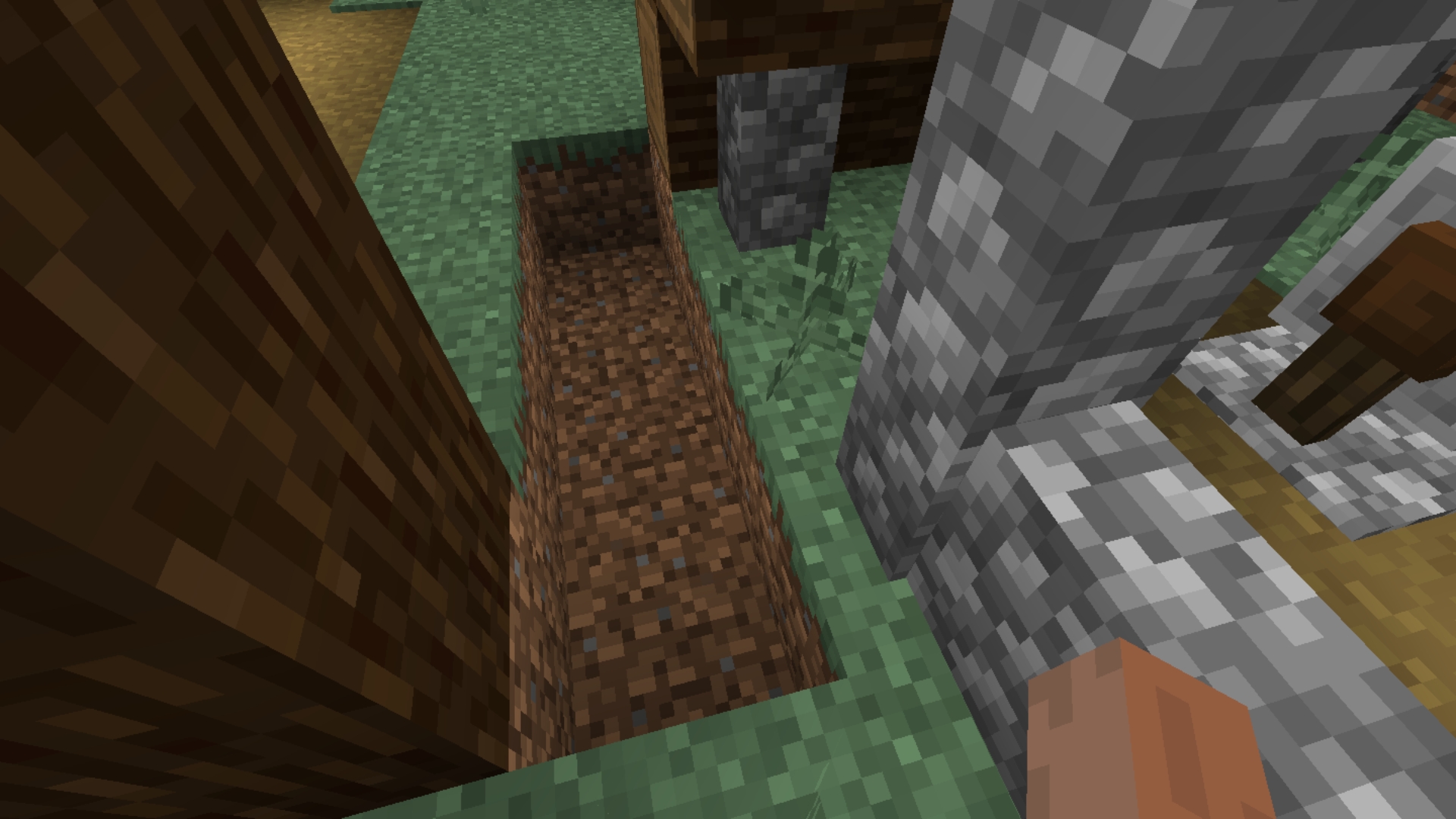 Everytime a weaponsmith like this one generate it comes with 4 blocks of air on its side that probably should not be there and instead of it, the natural terrain of the place it generate should cover the space.