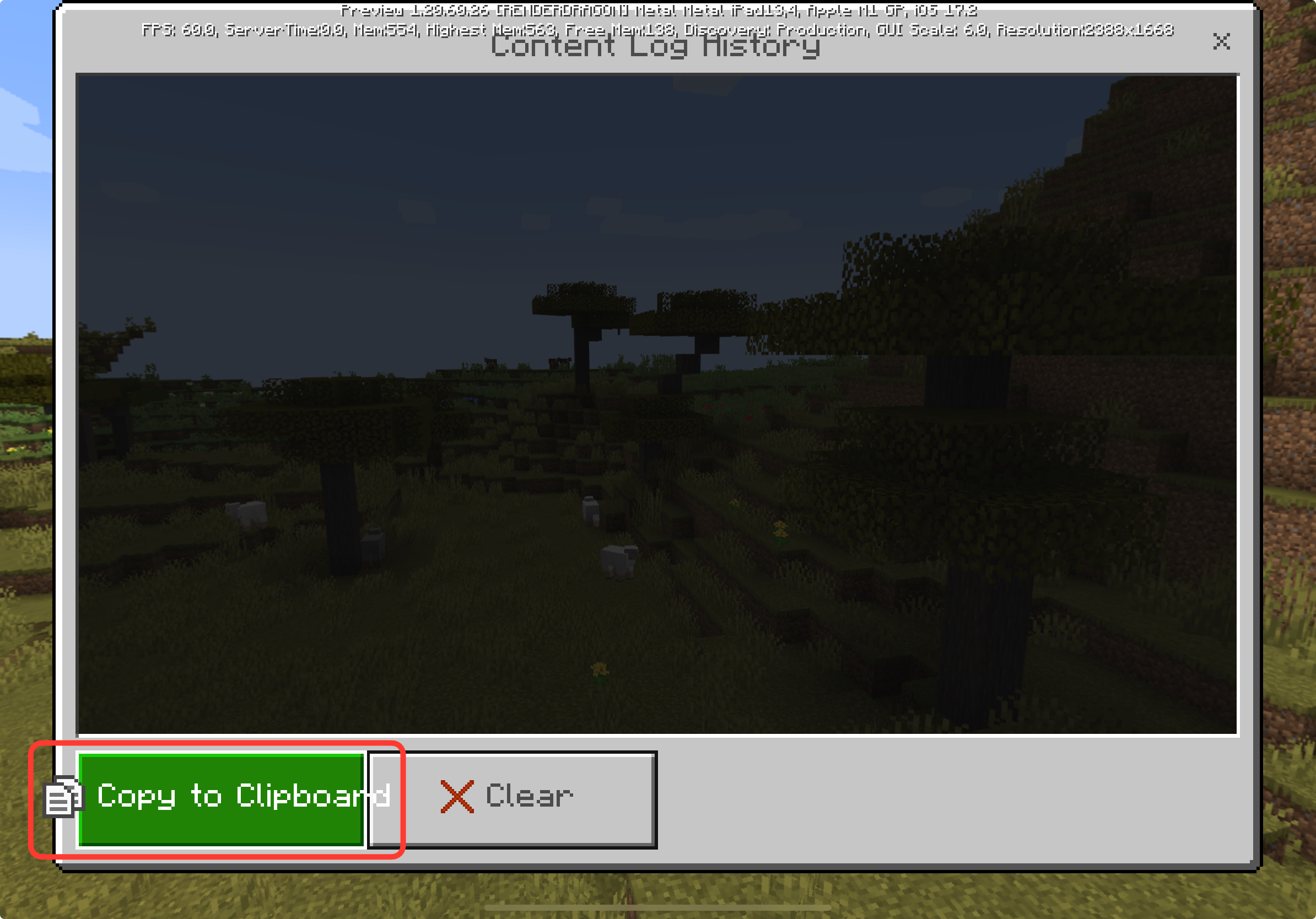 The content log history’s copy to clipboard buttons text and icon is to big too fit on the button
