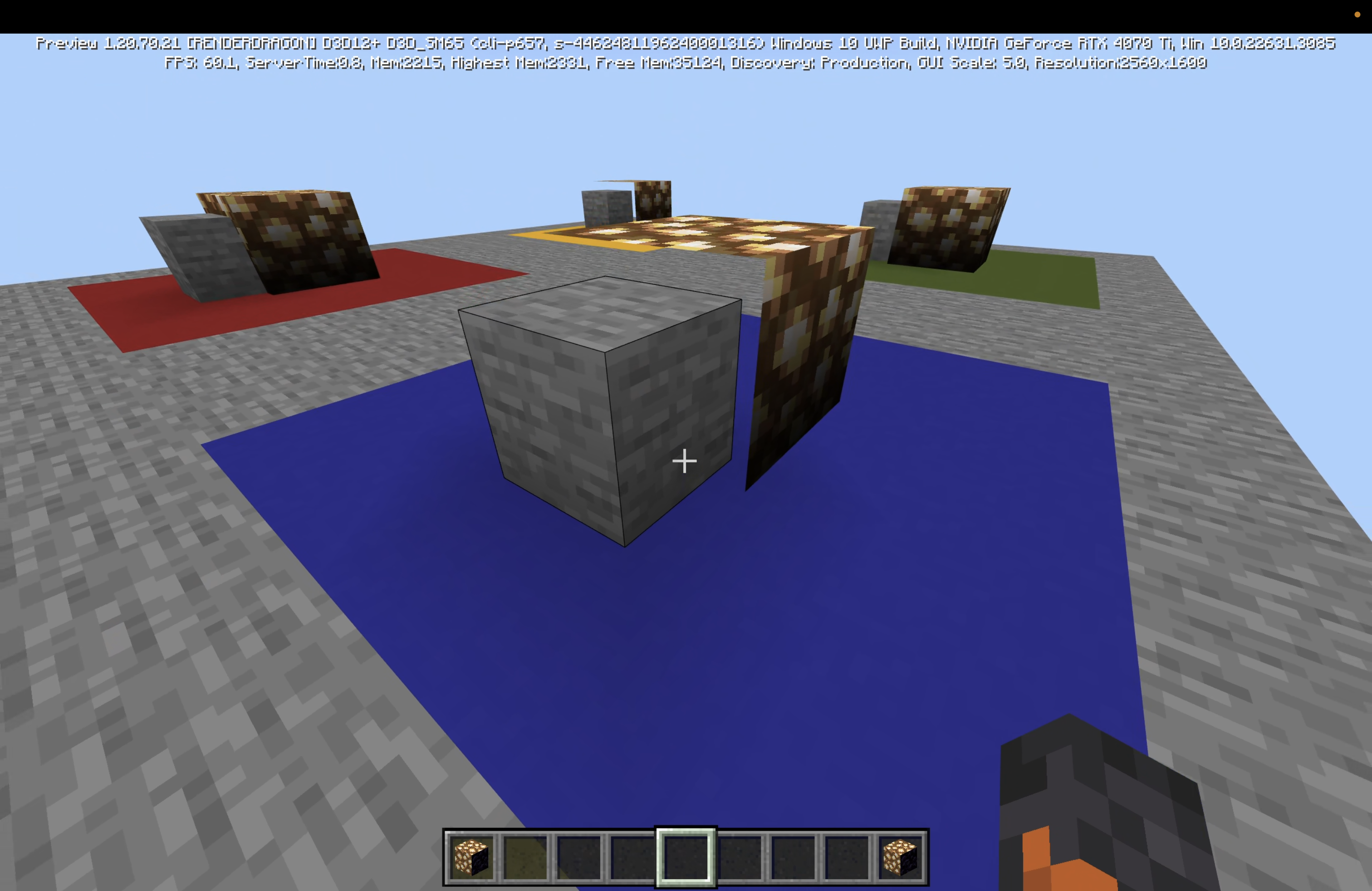 ), the working example is set above both blue and green concrete. The bugged example is set above red and yellow concrete. All custom blocks have been scaled to more easily demonstrate the culling.
