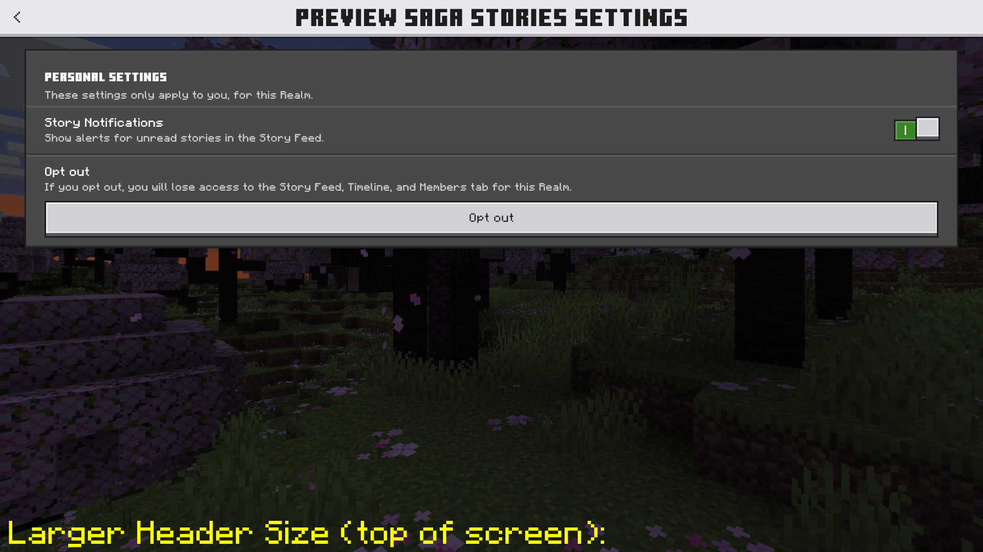 The title/header of the Realms Stories Settings Screen is bigger than the rest of the Ore UI