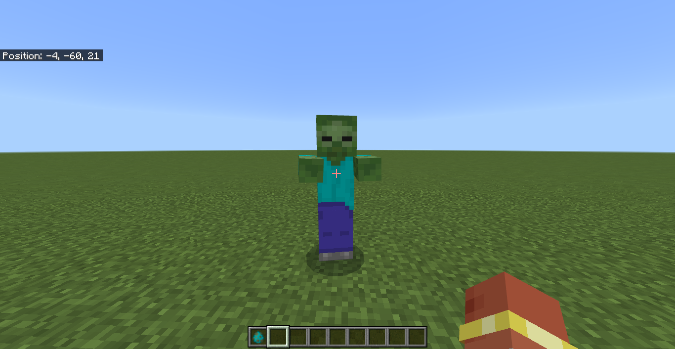 The zombie spams the chat with "Hello", when the player is looking at it while in creative.