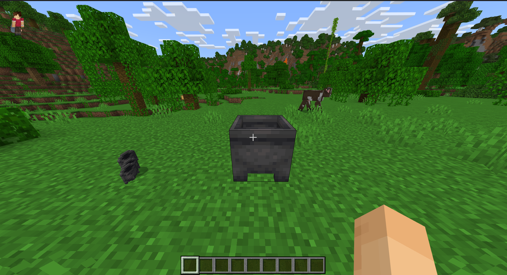 When i press Middle Click while looking at a cauldron, instead of switching to the cauldron item in my inventory, it puts a new cauldron item in my inventory that uses a flat model of the block texture. (block texture item does not stack with regular item, both are named "Cauldron" and the glitched one appears to only have a texture glitch, otherwise regular cauldron item)